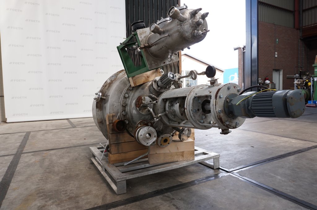 General SKU354T1003 LocationBarneveld MakeChemtech International Ltd Type212W and WH 35F No. CC9816-01 and CC 9816-07 Year of construction1998 Pressure Working pressure40 Bar Working pressure jacket13.8 Bar Main Features MaterialStainless steel Motor7.5 KW Surface1 m2 Specified Features - Scraped surface heat exchanger MaterialStainless steel 1.4306 (304L), Stainless steel 1.4401 (316) Scraped surface heat exchangercheck Number of stages:2 Heating surface1,03m² Heating surface shell±0,28 Heating surface rotor±0,25m² Capacity 200kg/h Cylinder sizesDia: 152x600mm Max. temperature0-195°C With jacketcheck Rotor can be cooled/heatedcheck Max. temperature0-195°C InletDia: 50mm, 38mm OutletDia: 50mm, 38mm Motor1.1kW, 400/690volt, 1465rpm With post treatment cylindercheck Heating surface±0,5m² Cylinder sizesDia: 280x570mm Motor7,5kW, 400/690Volt, 1430rpm ...