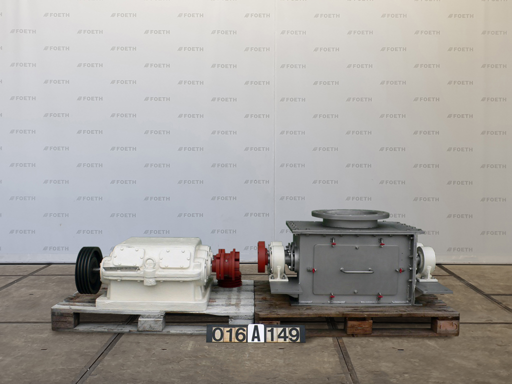 General SKU016A149 Makeunknown, manufacturer plate is missing LocationBarneveld Material Housing materialStainless steel 1.4301 (304) Main Features Inlet diameter220 mm Width440 mm Specified Features - Lump breaker Lump breaker(1x) Rotor sizesdia. 220x450mm Material Rotor CuNi 90/10 Inletdia. 350mm, Inlet flange dia. 505mm Information Extra SpecificationsMaterial Rotor CuNi 90/10 Without motor : Gearbox ratio 15:1 Lump breakersDiscount-Breakers > Lump breakersDiscountBrand > - What you can expect from Foeth: -- Machine is in working condition -- At a reduced price compared to new -- Ready for shipping to any destination worldwide -- You are welcome to inspect the machine in Barneveld, The Netherlands. Please visit us in Barneveld for many more machines!