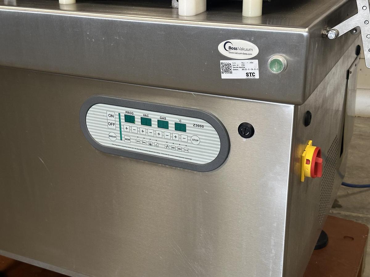 For Sale: Boss Titan F-1000 Automatic Vacuum Packaging Machine, High-quality Boss Titan F-1000 Automatic vacuum packaging machine available for sale. This industrial-grade machine is designed for high-capacity and reliable packaging operations., Configuration:, - Automatic lid system, - Integrated discharge conveyor belt, - Equipped with the largest 300 m³/h Busch vacuum pump, Technical Specifications:, - Chamber size: approx. 1015 x 675 x 210 mm, - Seal length: up to 980 mm, - Vacuum pump capacity: up to 300 m³/h, - Power supply: 3-phase, 230/400 V, 50 Hz, - Advanced sensor control system with programmable settings, - Double seam sealing system for secure packaging, - Stainless steel construction for durability and hygiene, Features:, - Fully automatic operation for efficient production, - High-performance Busch pump ensures fast and deep vacuum levels (down to approx. 0.1 mbar), - Co ...