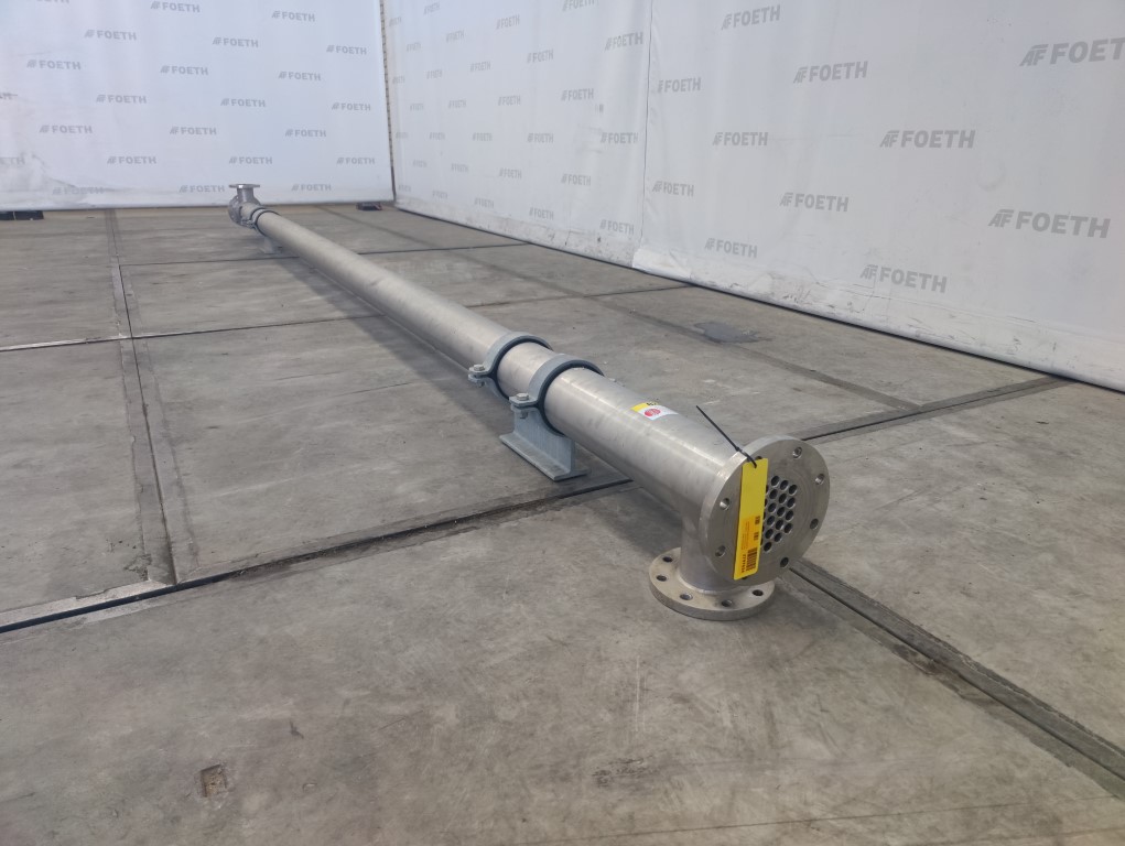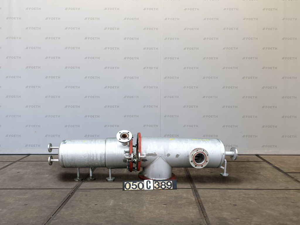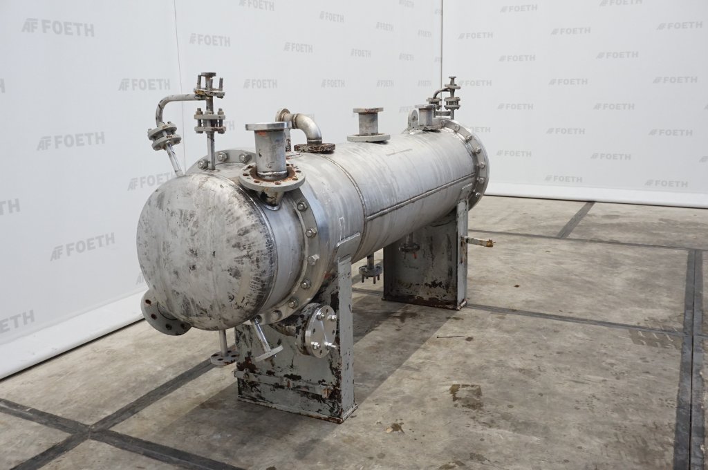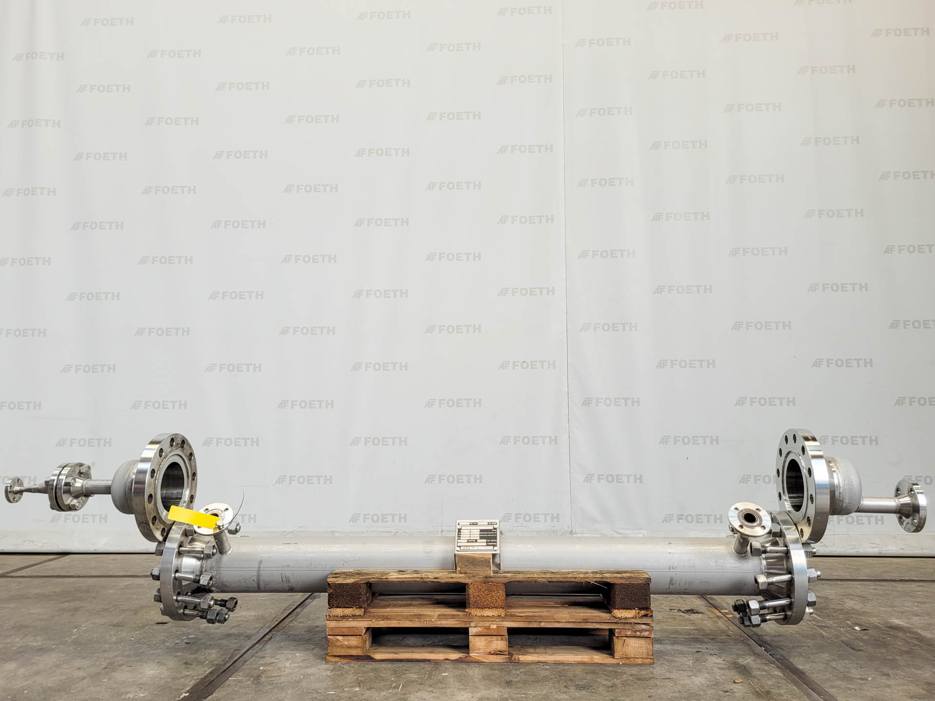 General SKU212T543 MakeKuehni LocationBarneveld Pressure Vacuum possiblecheck Vacuum possible jacketcheck Working pressure shell1 Bar Vacuum possible shellcheck Working pressure tubes6 Bar Main Features Shell (Material)Stainless steel Tube (Material)Stainless steel Surface6.3 m2 Specified Features - Shell and tube heat exchanger MaterialStainless steel 1.4571 (316Ti) Heat exchangercheck Horizontalcheck Heating surface6.3 m² Tube capacity17,5 Ltr. Number of tubes:1 Tube diameter30 mm Tube length± 13,1 m Wall thickness tubes2 mm Shell capacity41 Ltr. Shell diameter190 mm Shell length2490 mm Wall thickness shell2,6 mm Max. temperature- 200 °C Shell connectionsDN 25, DN 15 Cover connectionsDN 80, DN 40 Information No.227480 Year of construction1990 Floorspace2,6x0,55 m Total height0,35 m Weight160 kgFine chemicalsStarchOther chemicalRubberShell and tub ...