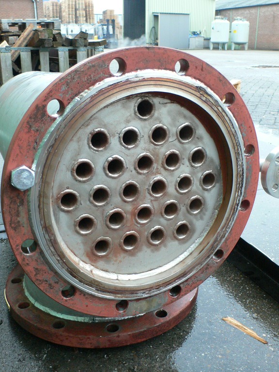 General SKUR0365 MakeBuss SMS LocationBarneveld TypeRieselfilm Gaskuhler Pressure Working pressure shell4 Bar Working pressure tubes0.5 Bar Tubular vacuum possiblecheck Main Features Shell (Material)Stainless steel Tube (Material)Stainless steel Surface3.15 m2 Specified Features - Shell and tube heat exchanger MaterialStainless steel 1.4541 (321) Heat exchangercheck Verticalcheck Heating surface3,15 M2 Number of tubes:25 Tube diameter44.5mm Tube length1000mm Wall thickness tubes2mm Max. temperature200 degr. C Shell diameter400mm Shell length1000mm Information No.22.11.6351/3 Year of construction1994 Floorspace2,0x0,8 M Total height0,8 M Weight500 KgFine chemicalsStarchOther chemicalRubberShell and tube heat exchangersBiotechnologyAgrochemicalsSpicesPlastic & polymersCatalysts & fillersFeed additivesPaper & otherSolventsDetergent & surf.Other pharmaceuticsCo ...