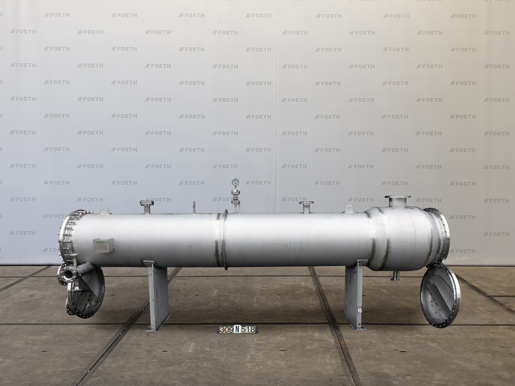 General SKU309N518 MakeEbner Anlagen und Aparate Germany No.062404700 Year of construction2007 Mounted on legscheck Material Shell materialStainless steel 1.4462 (318LN) Cover materialStainless steel 1.4462 (318LN) Tube materialStainless steel 1.4462 (318LN) Pressure Vacuum possiblecheck Working pressure shell0.5 Bar Vacuum possible shellcheck Working pressure tubes2 Bar Tubular vacuum possiblecheck Main Features Shell (Material)Stainless steel Tube (Material)Stainless steel Surface120 m2 Specified Features - Shell and tube heat exchanger Heat exchangercheck Horizontalcheck Heating surface120 m2 Tube capacity820 Ltr Number of tubes:334 Tube diameter25,0mm Tube length5000mm Wall thickness tubes1,0mm Max. temperature10-100 gr.C, Shell capacity1600 Ltr Shell diameter750mm Shell length5000mm Wall thickness shell4,0mm Max. temperature10-120 gr.C Shell conne ...