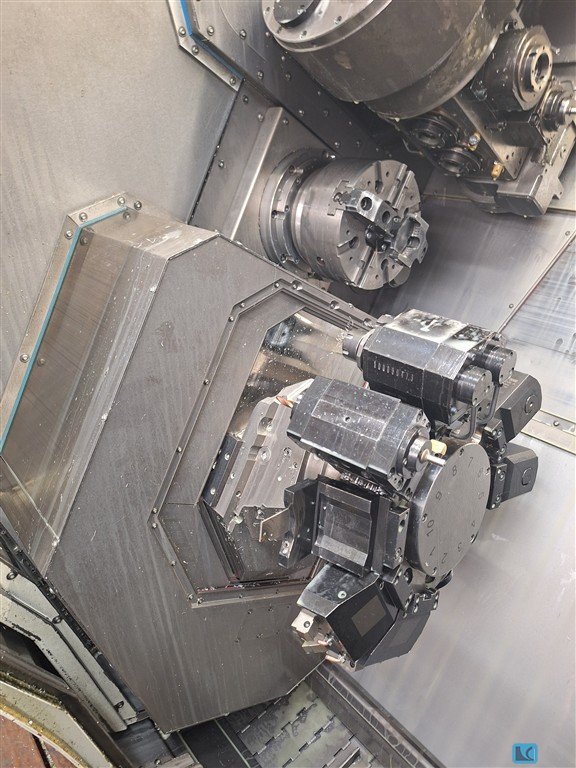Okuma Multus U 3000Year of manuf. : 2022 Control : Okuma OSP-P300 SA Turning diam. : 650 mmTurning length : 1000 mm____________Description:Main spindle:Technology:Motor spindleSpeed:4,200 rpmPower:22 kWTorque:427 Nmspindle bore:91 mmHollow clamping cylinder:86 mmC-axis:High precision packageChuck:SMW KNCS-N 275-86 K8Sub spindle:Technology:Motor spindleSpeed:5,000 rpmPower:22 kWTorque:420 Nmspindle bore:80 mmHollow clamping cylinder:77 mmC-axis:High precision packageChuck:SMW BHD-FC 210-52-3Tool carrier X/Y/Z/B:Technology:Milling spindleSpeed:12.000 rpmPower:22 kWTorque:120 NmTool holder:HSK 63Y-axis:250 mm (+/- 125 mm)B-axis:240°Tool magazin:Number of stations:80Equipment:Measuring systems:Direct in X/Y/Z axis (glass scales)Chip disposal:Chip conveyorCoolant supply:IKZ system, 70 barCoolant temperature control:Deltatherm E4Chip rinsing:working area, manual gunAccuracy package:C- ...