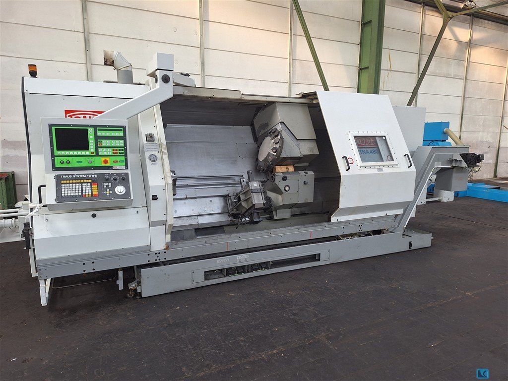 Machine Details Warehouse number 1105-03703 Machine type CNC lathe - inclined bed machine Make SOMAB Type TRANSMAB 400 Year of construction 2002 Conventional control type Control NUM 1060 T Storage location FRANCE Country of origin France Delivery time immediately Freight base EX WAREHOUSE Technical details Turning diameter 500 mm Turning length 650 mm Control NUM 1060 T Turning diameter above the face sled 240 mm Turning diameter via transverse guide 320 mm Main drive motor 18/24 kW Spindle speeds 3600 rpm Spindle passage 73 mm Chuck diameter 210 mm Tailstock cone MK 4 Total power requirement 30 kW Machine weight approx. 4 t Space requirement approx. 3.60 X 2 X 2 m Information Machine in inclined bed design with NUM 1060 CONTROL HYDRAULICK CHUK PARTS FAENGER SPAENEFOEDERER 12x revolver VDI 30