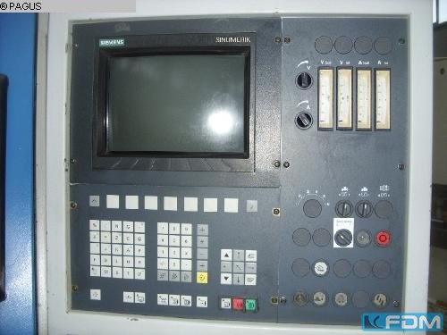 faceplate diameter:1000 mm swing diameter:1600 mm turning height:1200 mm main drive:75 kW faceplate speeds from - to:7 - 800 U/min milling motor:25 kW milling head speed:7 - 3000 U/min milling spindle - taper:ISO 50 cross rail adjustment - vertical:800 mm ram head dimension:240 x 240 mm weight of the machine ca.:40 to dimensions of the machine ca.:9 x 7,8 x 6,0 m Machine general overhould in 2004 and equiped with Siemens 840 D control - tool changer rack magazine - C-axis, live tooling, - Transmit function electronical Y-axis - angular milling head - complete splash housing - coolant device, chip conveyor