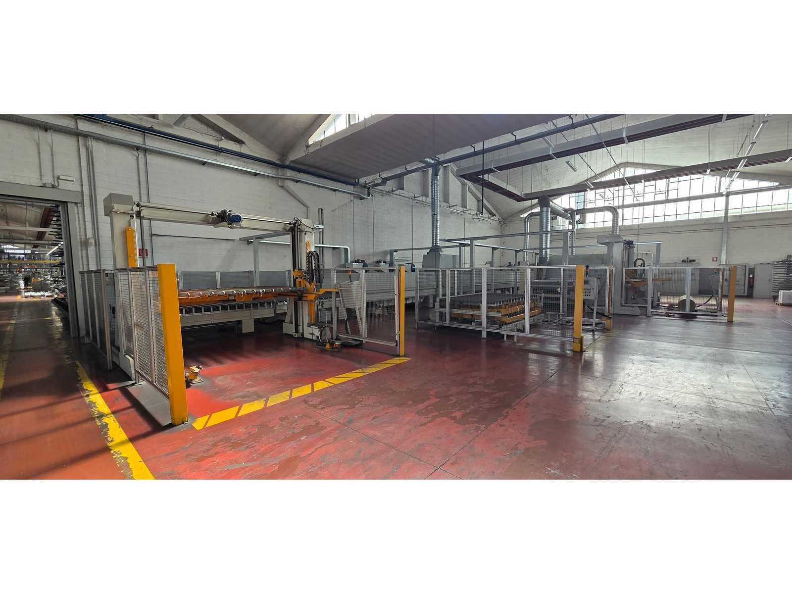 Line for painting door glass, consisting of: - automatic loader with flap arm equipped with LOGLAS 16.30 suction cups - automatic loader with bridge structure, programmed picking on LOGLAS/CL 16.30 trolleys - automatic oscillating spraying machine FALLENGLASS 1700 - year 2007, with belt conveyor covered with paper, complete with inlet roller conveyor extension with oscillating and ionizing blower unit - PRE-HEATING OVEN in-line with lower infrared lamps PRE/I-NIR - 180° sideshift with ventilated transversal flash-off oven with CEFLA GT180/3400/5500 air-heating coil - in-line drying oven with hot air and infrared lamps GLASSOVEN EL/7 - year 2007 - cooling tunnel with upper and lower air curtains CEFLA GLASSCOOL SI-3/3 - year 2007 - motorized conveyor VTR 2500 - automatic unloader on trolleys with CEFLA bridge structure UNLOADER -WASHING MACHINE NOT PRESENT- Auction-ID: A7-454 ...