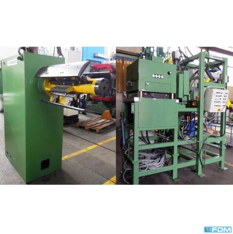 CONTROLS electronic controls OVERALL SPECIFICATIONS (COIL LINES) sheet width max.: 200 mm sheet thickness max.: 4.5 mm coil weight max.: 0.5 to DECOILER coil weight max.: 0.5 to mandrel expansion range from: 250 mm mandrel expansion range up to: 550 mm LEVELLER UNIT sheet width max.: 300 mm sheet width (min): 20 mm sheet thickness max.: 4 mm sheet thickness min.: 0.5 mm material cross section max. (450 N/mm2): 800 mm² number of leveller rolls: 7 diameter of leveller rolls: 65 mm number of infeed-/outfeed rolls: 4 diameter of feed rolls: 65 mm drive power: 1.5 kW loop controls: yes ELECTRICAL SPECIFICATIONS mains voltage: 380 V mains frequency: ...