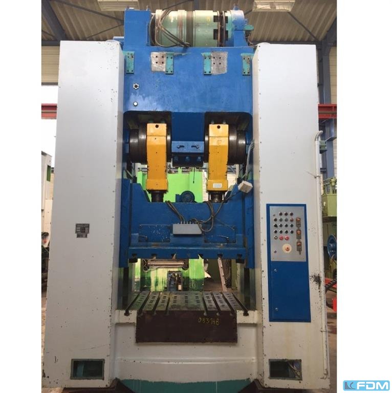pressure:160 t distance between columns:2050/1900 mm stroke:15 - 170 mm no. of strokes:15 - 40 /min distance table/ram, max. stroke up, adjustment up:690 mm table surface area:1600 x 800 mm side window:800 mm ram surface:1620 x 700 mm ram adjustment:140 mm power requirement:15,0 kW weight:24,0 t Dimensions (WxDxH):3,3 x 2,3 x 5,3 m height over floor:4,8 m height beneath floor:0,5 m clutch:pneumatic ram adjustment:motoric ram counterbalance:pneumatic