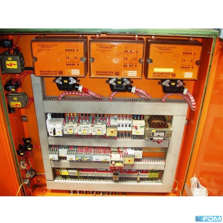 pressure:300 t distance between columns:1220 mm stroke:1000 mm distance table/ram, max. stroke up, adjustment up:1200 mm table surface area:1200 x 1000 mm pressure of drawing cushion in table:115 t stroke of drawing cushion in table:400 mm die cushion area:1100 x 860 mm table height over floor:900 mm side window:550 x 1000 mm ram surface:1200 x 1030 mm speed down:400 mm/s speed up:350 mm/s working speed:12 - 31 mm/s oil volume:1080 l power requirement:36,0 + 19,0 kW weight:22,0 t dimensions (WxDxH):2,5 x 2,5 x 6,3 m height over floor:5,4 m height beneath floor:0,9 m German Safety: permitted for manual loading:UVV 11.064 - VBG 7n5.2 light guard:Sick hydraulic safety block and pump:Fabrikat Rexroth