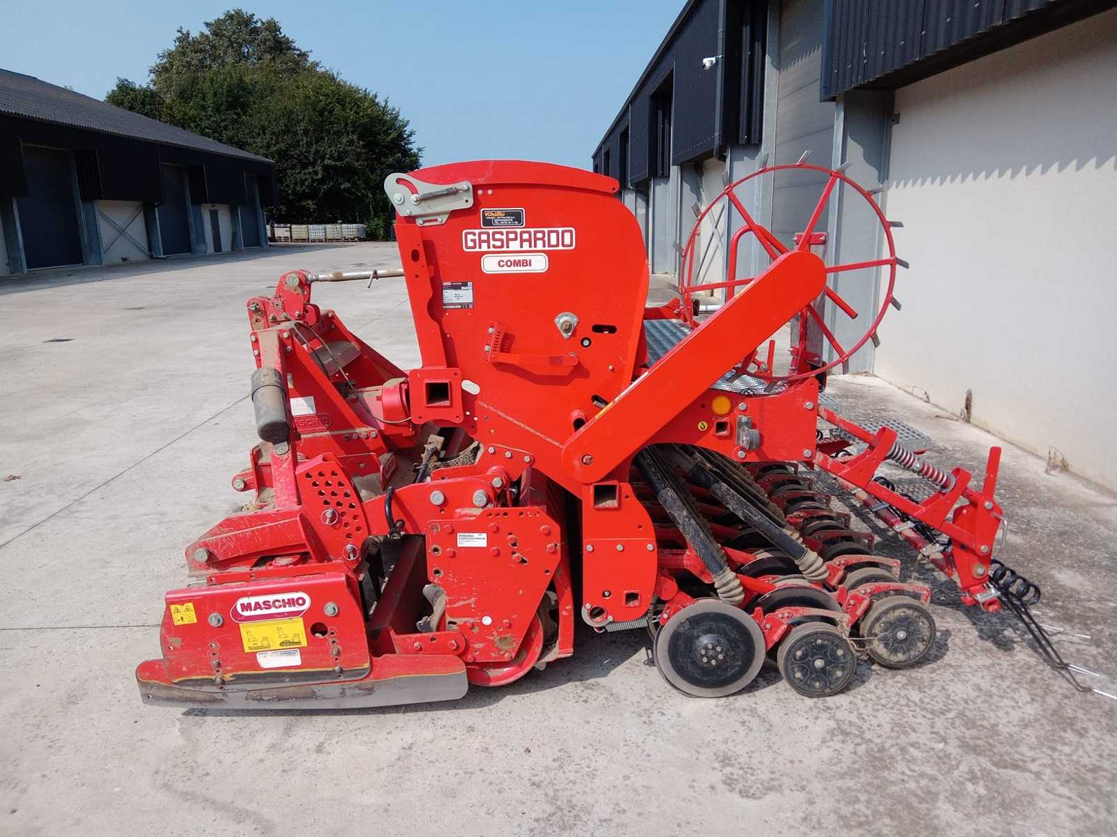 Equipped with: DM 3000 Combi seeding combination, 12 rotors equipped with 24 teeth, 2 gears by means of interchangeable gears 540/193-353-T 1000/357-T, Cat 2 coupling including pendulum on lower tension, 540/1000 rpm drive, PTO shaft equipped with plate slip clutch, packer roller 500mm, equipped with hardened scrapers and central adjustment, leveling plate attached to the roller, construction seeding combination 3mtr working width, 48 Corex straight discs 350mm, (24 rows), 600ltr seed tank, 29 box outlets, with level indication, stepless gearbox driven by step wheel, seed wheels with fine and coarse control, mechanical sowing depth adjustment, multi-roller seed harrow, parking supports, hectare counter, path marking, lighting. Auction-ID: A1-40134-72