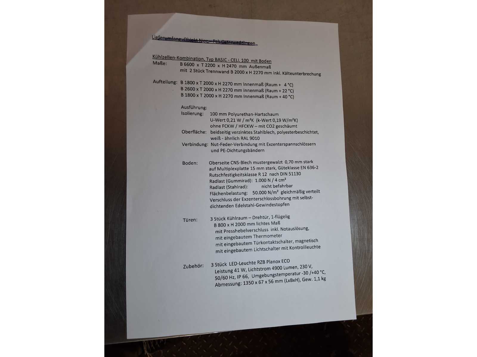 Cold room combination Basic - Cell 100, 3 chambers with bottom, total size 6600x2200x2470 mm, 100 mm polyurethane panels without units Auction-ID: A7-45675-26