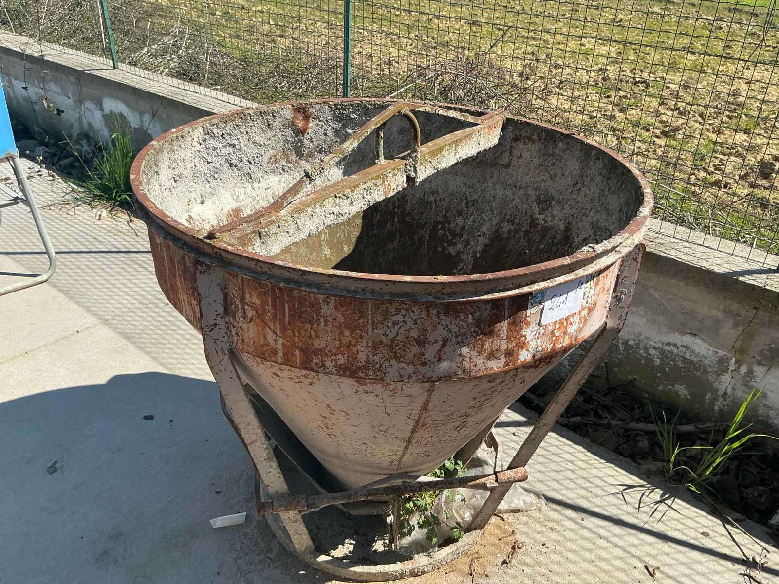 Mobile ring trough mixer with 2 exchangeable mixing blades and 1 exchangeable side scraper for mixing smaller quantities of concrete.