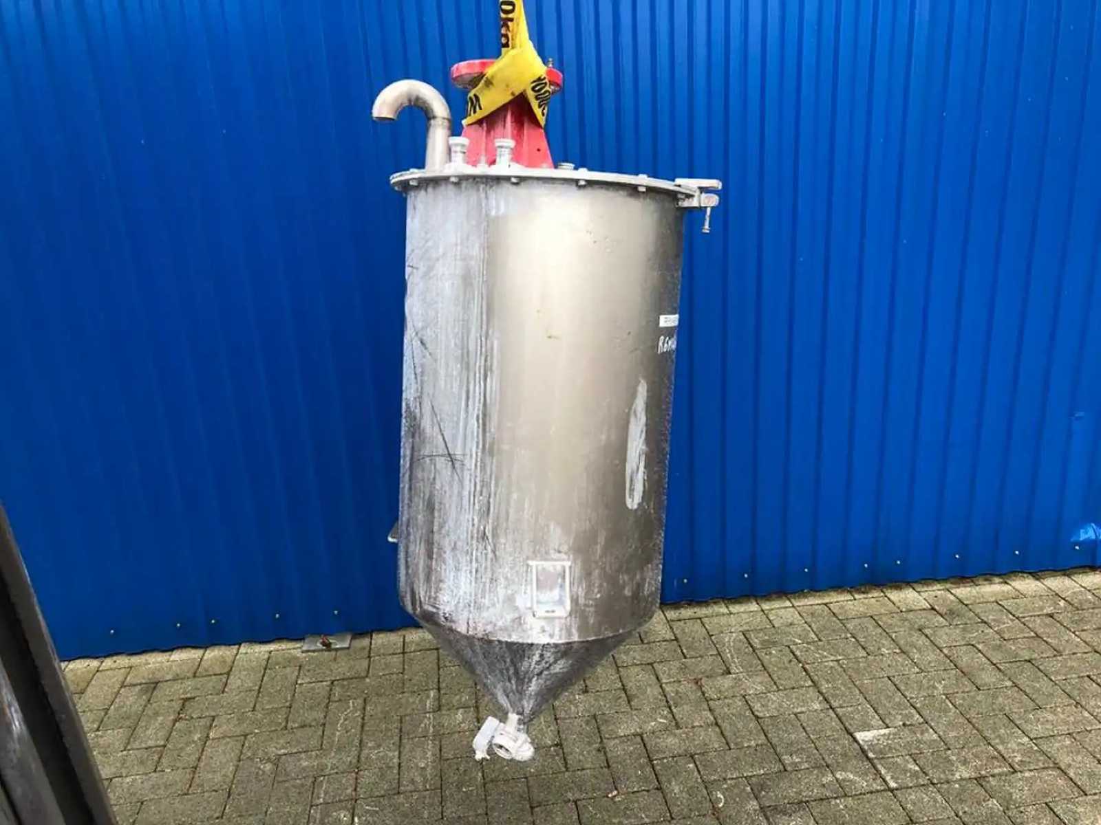• Stainless steel tanks made of AISI 304 (V2A) • Volume: approx. 130 litres • With integrated agitator (motor missing) • Conical design for optimal emptying • Hinged lid available • With spray head (CIP) for cleaning • Outlet DN25 • Robust industrial design • Suitable for chemicals, paints and coatings • Agitator with propeller • Used, with signs of wear Note for non-EU buyers: Buyers outside the European Union are responsible for all costs of customs clearance as well as applicable import duties, taxes and fees. Auction-ID: 04H-S04-1