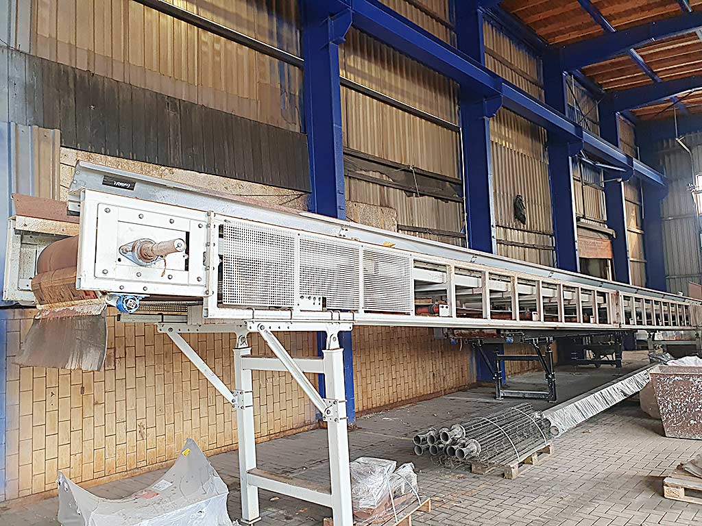 Technical description : 2 UNITS SCRAP CONVEYOR SYSTEMS consisting of: - First unit being approx. 35 meters length - Second unit being approx. 40 meters length - Each having a drive unit, gearbox, reversing station - Conveyor width is approx. 1100mms - Conveyor height is approx. 1200mms. Both units were professionally dismantled, cleaned and stored carefully into containers in our warehouse in D-57258 Freudenberg some 140 km north of Frankfurt International Airport