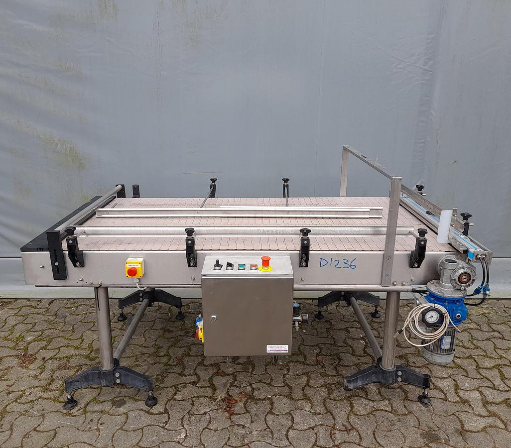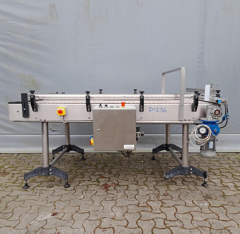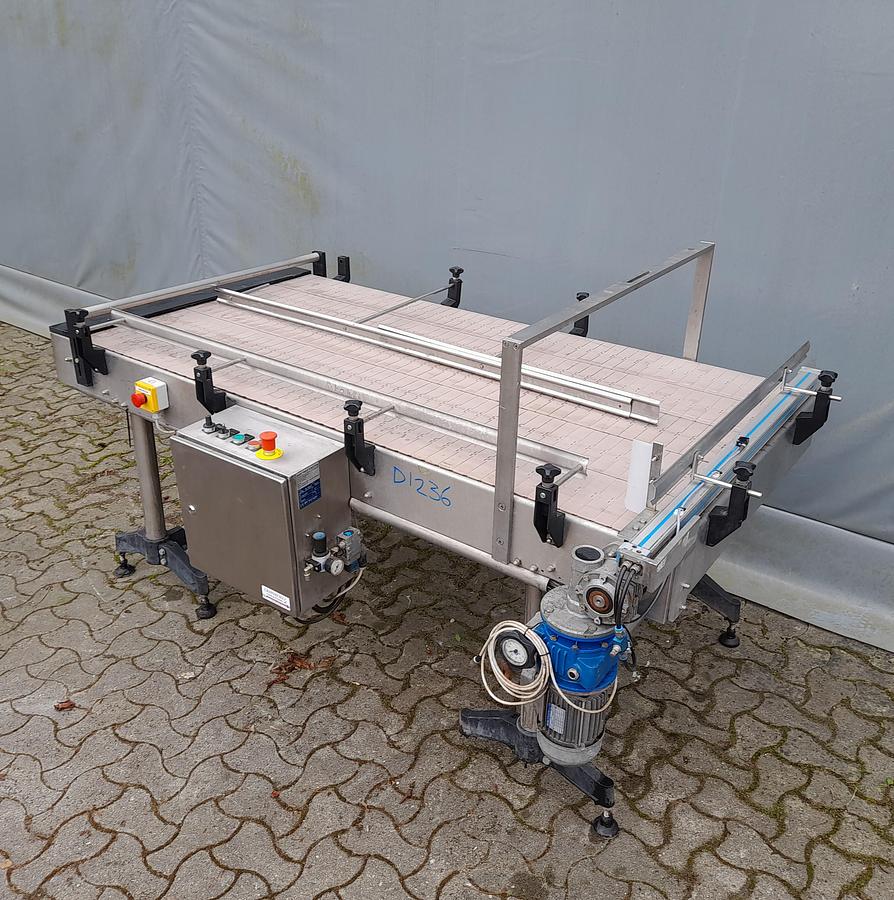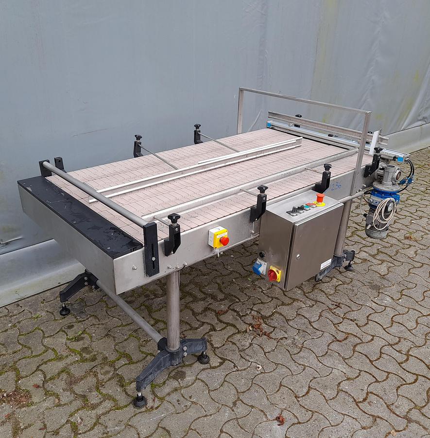 Roller conveyors with chains pull 90° RA1846 Type: Transnorm 3300-600-550 Length: FL = 3300 mm Conveyor width: FB = 550 mm Total width: 600 mm The chains off slide width: 700 mm height (BH): 140 mm Support roller pitch: 80 mm including pneumatic stopper Optionally available: Supports Side guide one and both sides frequency inverter Prices net plus VAT from central warehouse Dr. Sonntag GmbH & Co KG, 97076 Würzburg Features: KW: 0,37/S1 Engine type: Bremse, SEW Eurodrive angle: 90° Nominal / outside width in mm: 600 Roll width in mm: 550 Roll division in mm: 80 Conveying length in mm (NL): 3300 Bauhöhe in mm (BH): 140 Electric data: 230, 400 For individual, professional advice, simply contact us. Simply contact us by phone or e-mail. We will be happy to help you with the planning and implementation of your projects. We look forward to hearing from you. With kind regards Your tea ...
