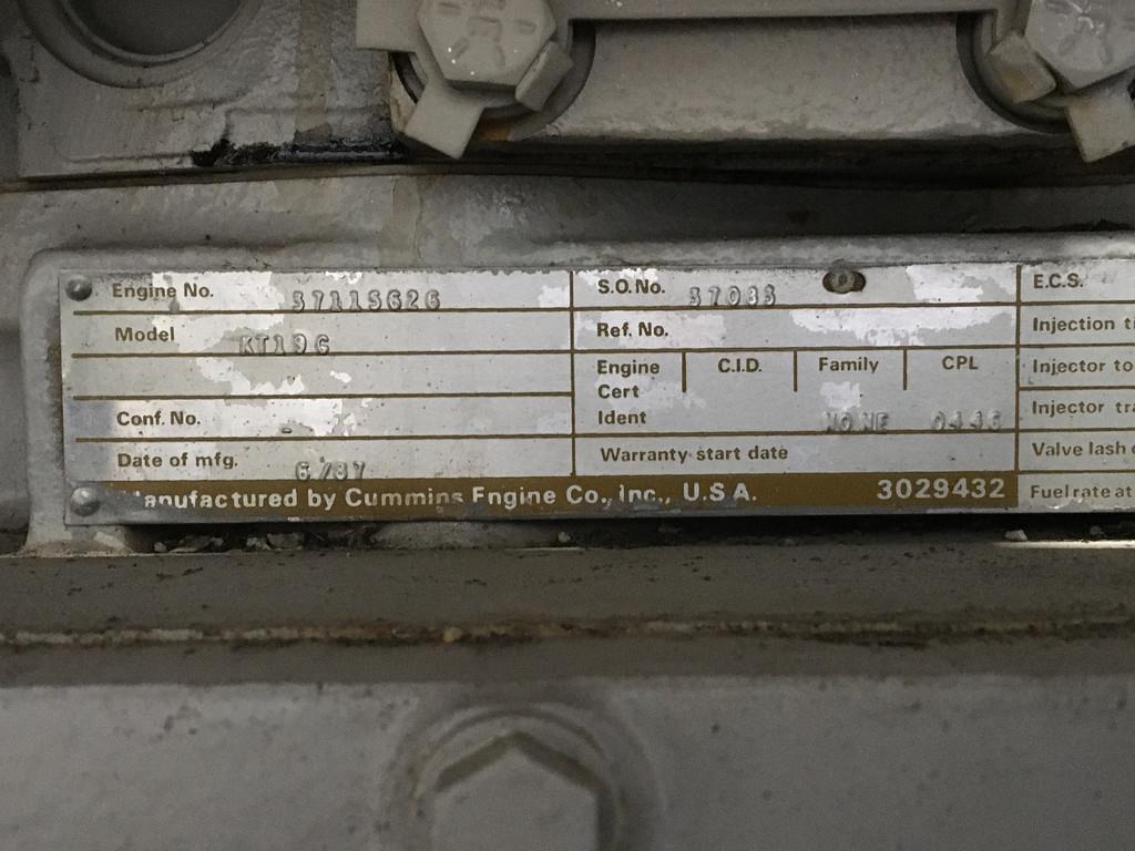 | 1991 | CUMMINS | KTA19-G3 GENERATOR 500KVA USED | |
