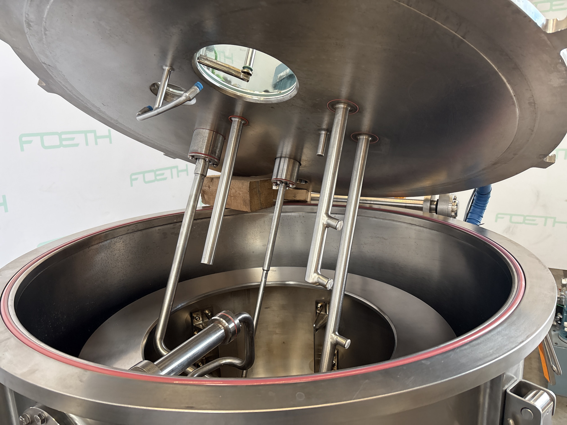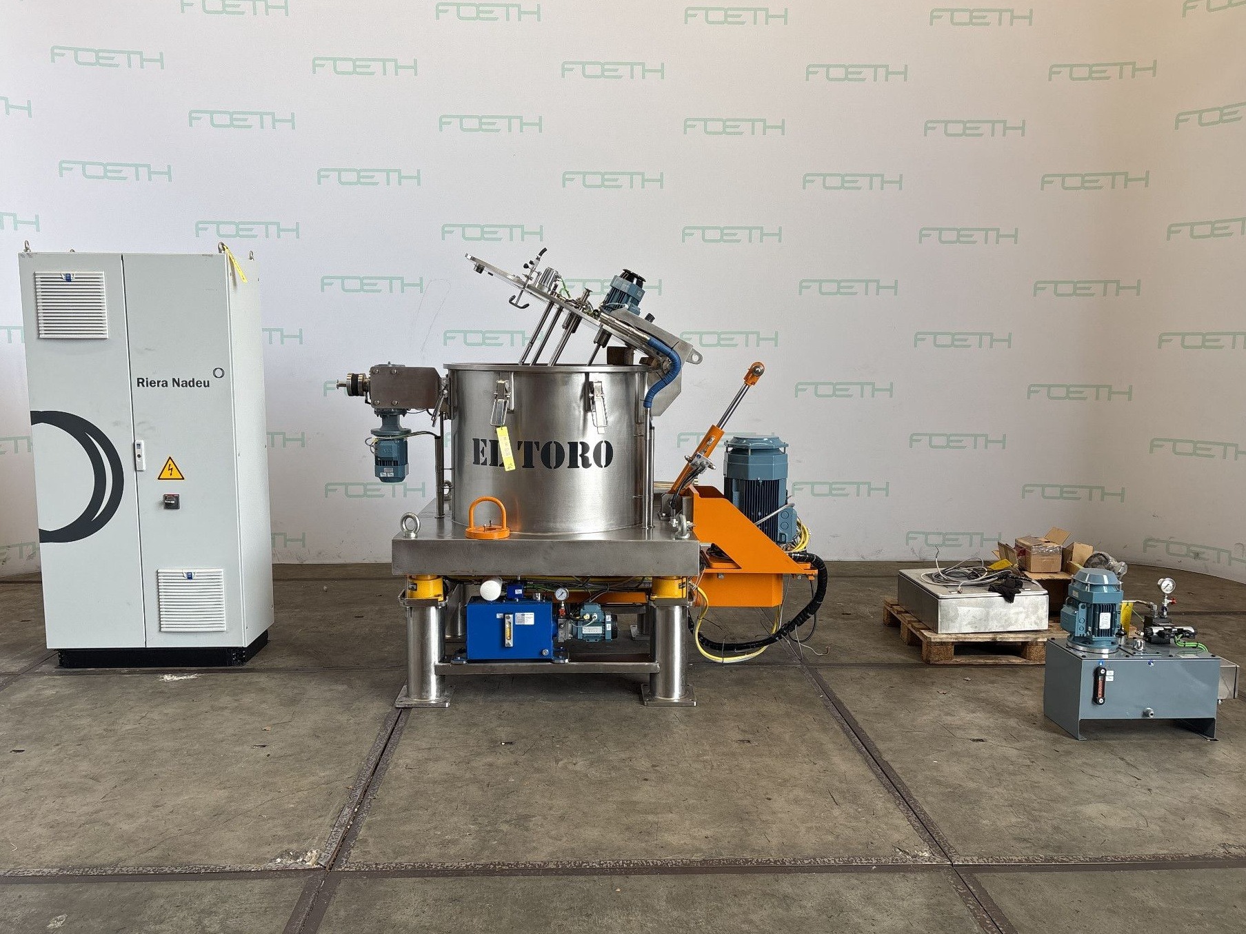 General SKU244Y171 LocationBarneveld CEcheck Main Features MaterialStainless steel Motor11 KW Inlet diameter22 mm Specified Features - Basket centrifuge MaterialStainless steel 1.4404 (316L) Basket centrifugecheck Closed basketDuplex 2205 Capacity100 dm³ Basket sizesø 800 x 400 mm Max. loading weight125 kg Hydraulic operatedcheck Liquid outletDN100 With hydraulic unitHydra power Motor1,50 kW, 400 V, 1445 rpm With variable speed drivecheck Max. basket speed2600 rpm Max. temperature0° / 80 °C Information MakeRiera Nadeu Serial10590/P19/00726 Magento base g_extra_specificationsBasket dia. 800mm, Max. 2.600 Rpm, solid wall basket, contact parts in stainless steel AISI-316L / DIN1.4404, Basket wall in Duplex 2205, Max. allowable weight 125 KG according to technical documentation (manufacturer tag mentions 180 KG), motor 11,0 KW, 400/690 Volt, with control cabine ...