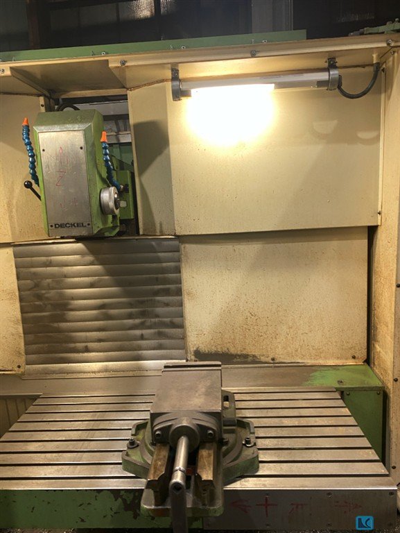 Universal tool milling machine DECKEL FP 4 MK with 3 axes active digital display Heidenhain TNC 113 Year of Make: 1990 Travel: X 500 Y 400 Z 400 Speed range: 50 – 2500 rpm With the following accessories: Rigid angle table 800 mm x 460 mm clamping surface Sliding vertical milling head Extendable drill quill Stepless feed via potentiometer Hydraulic tool clamping Hydraulic vise GRESSEL 125 mm Various SK 40 milling mandrels Splash guard cabin Automatic lubrication pump for X,Y,Z axis Machine Light Coolant Setup 4 pcs machine shoes Operating instructions
