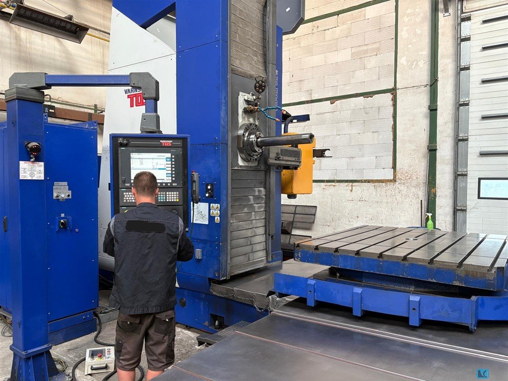 spindle diameter:130 mm spindle diameter:130 mm x-travel:2190 mm y-travel:1520 mm z-travel:1000 mm w-axis:1075 mm table surface area:2000 x 1800 mm workpiece weight max.:8000 kg spindle turning speed range:4,5 x 900 U/min spindle taper: ISO:50 faceplate turning speed range:4,5 x 180 U/min faceplate diameter:785 mm rapid traverse::5000 mm/min total power requirement:40 kW weight of the machine ca.:35 t dimensions of the machine ca.:5,5 x 6,9 x 5,2 m Machine retrofit and overhould with TNC 360 Heidenhain in 2023 and stepless spindle speeds - table indexing 4 x 90° - facing head 785 mm - exhauster - various arbors and tooling