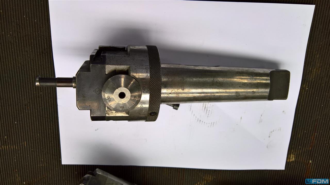 Boring head, spindle head, drilling head, grooving drilling head, grooving head, spindle drilling head, boring head, universal drilling head, boring tool, facing head -Manufacturer: Schmid, plan and boring head -Type: S.AdK 6 -Recording: SK50 -Adjustment accuracy: 0.01 mm -Dimensions: 175/150/H305 mm -Weight: 24 kg