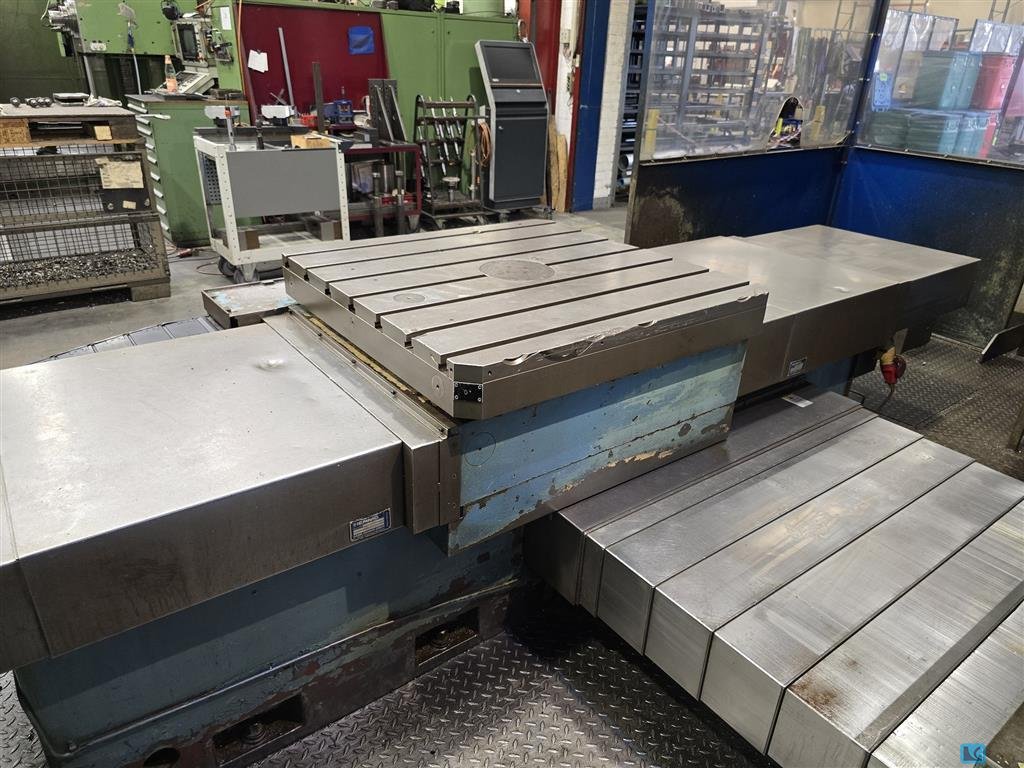 spindle diameter:130 mm x-travel:2190 mm y-travel:1520 mm z-axis:1520 mm w-axis:1000 mm table surface area:2000 x 1800 mm workpiece weight:8 t spindle motor:18 kW spindle taper ISO:50 spindle turning speed range:4,5 - 900 U/min faceplate diameter:785 mm rapid traverse:5 m/min total power requirement:40 kW dimensions of the machine ca.:5,5 x 6,9 x 5,2 m weight of the machine ca.:35 t Machine was retrofitted in 2023 with HEIDENHAIN TNC 360 CNC control - inf. variable spindle spped - 4 x 90° table positioning - diverse toolholders - dDust exhauster