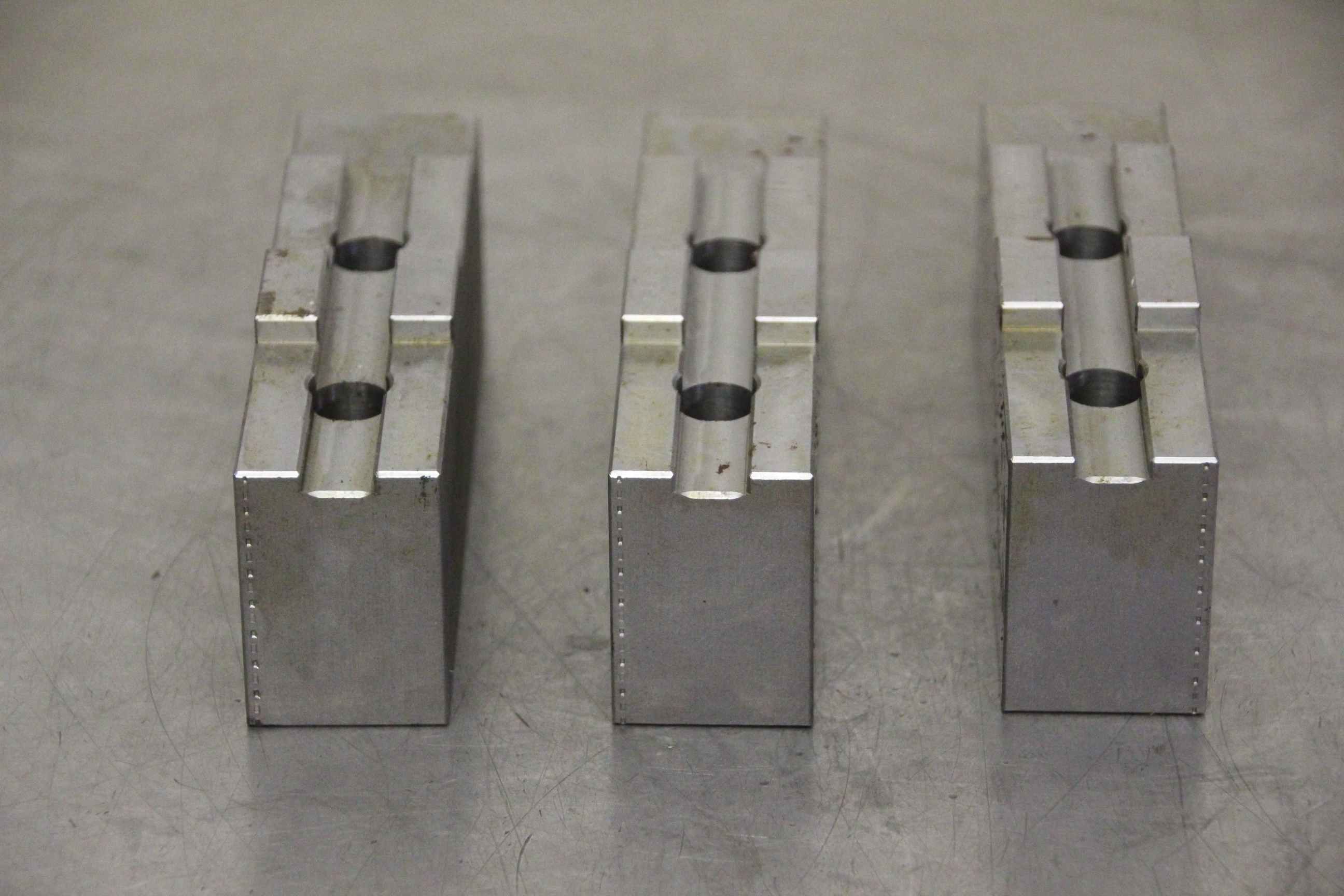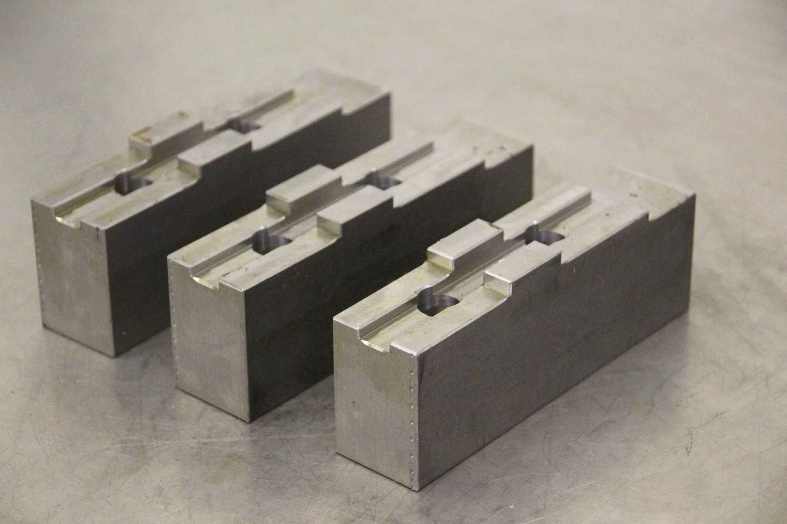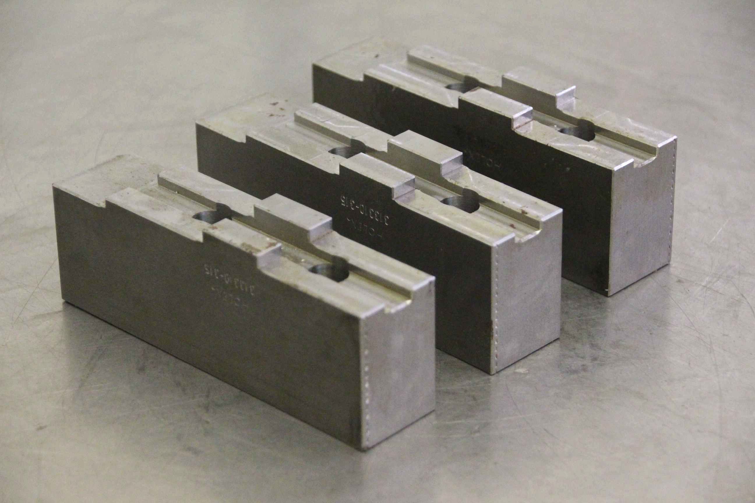 Interchangeable jaws, top jaws, three-jaw chucks, segment jaws, clamping jaws, stepped block jaws, stepped top jaws, block jaws -Manufacturer: Holex, soft attachment jaw set, 3-piece, 315 -Type: 313310-315 -Width: 35 mm -Dimensions: see photo technical drawing -Overall dimensions: 145/105/H55 mm -Total weight: 5.2 kg