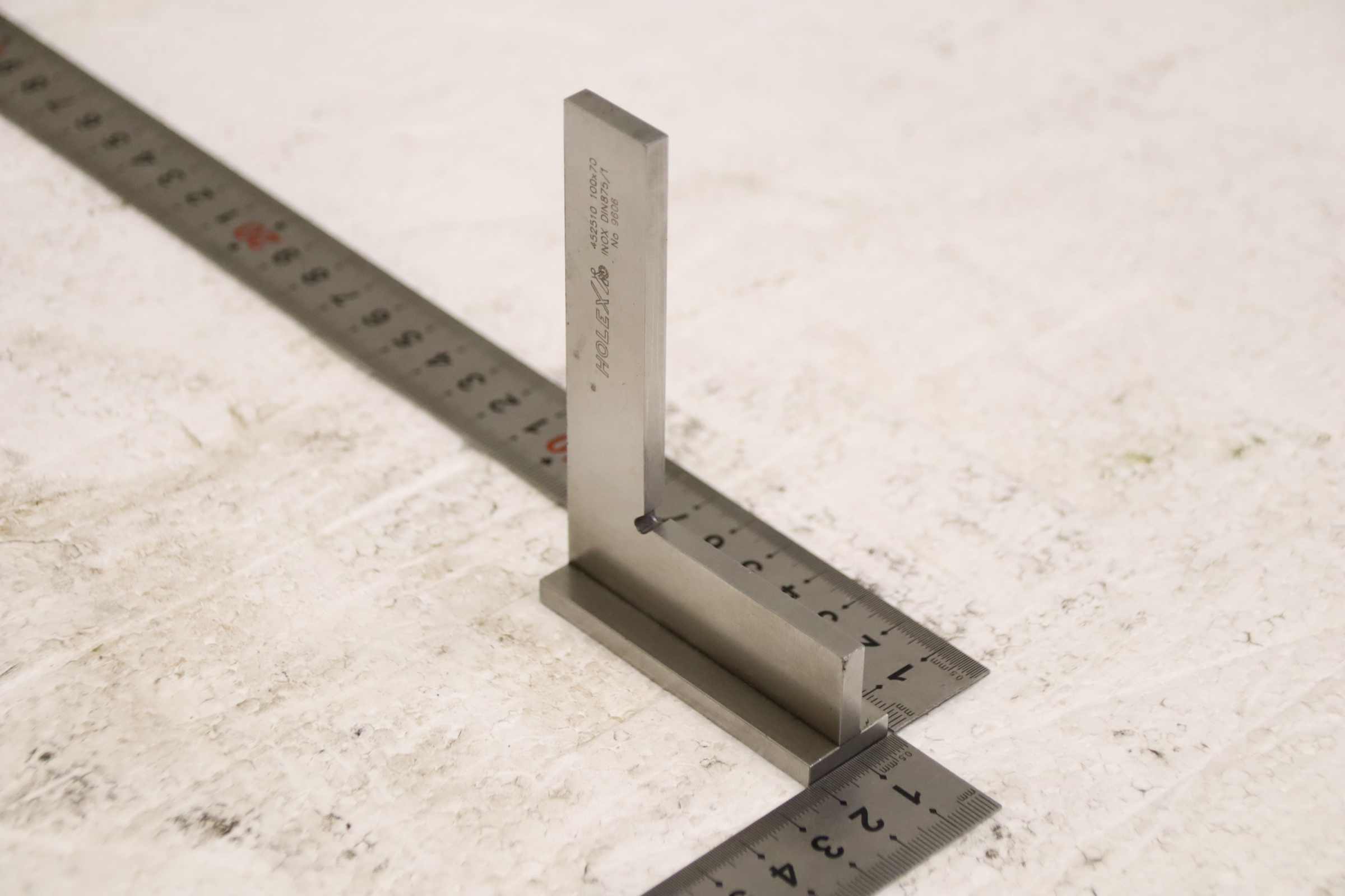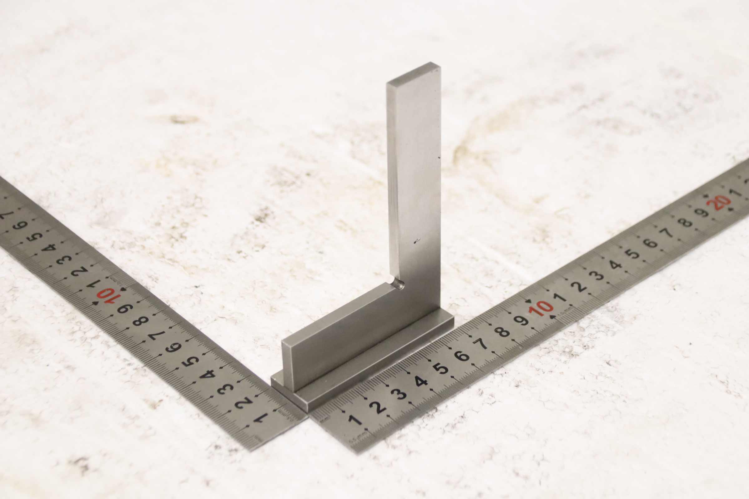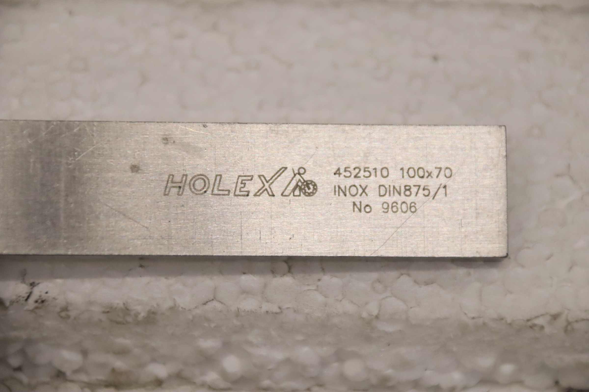 Stop square, locksmith square, control square -Manufacturer: Holex, stop angle DIN 875/1 -Type: 452510 100 x 70 mm -Accuracy level: 1 -Dimensions: 105/70/H20 mm -Weight: 0.3 kg
