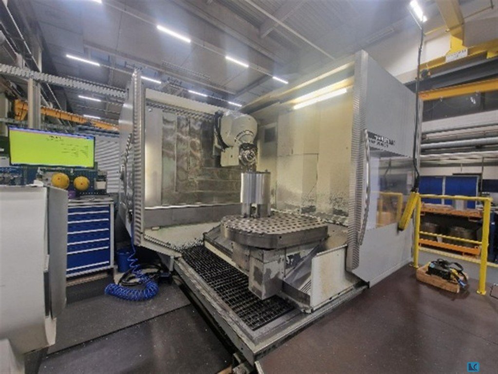 X-axis: 750mm, y-axis: 600mm, z-axis: 520mm, C-axis: 360°, B-axis: 180°, max. spindle speed: 18,000/min, control: Siemens SINUMERIK 840D powerline, connected load: 55kVA, length: 4603mm, width: 5250mm, height: 2785mm, weight: approx. 9t, operating hours power on: approx. 65,000h, spindle hours: approx. 19,000h. No defects known, internally maintained, without maintenance reports, with documentation, rotary table, high-pressure internal cooling and Bluhm spindle probe. An inspection on site is possible.