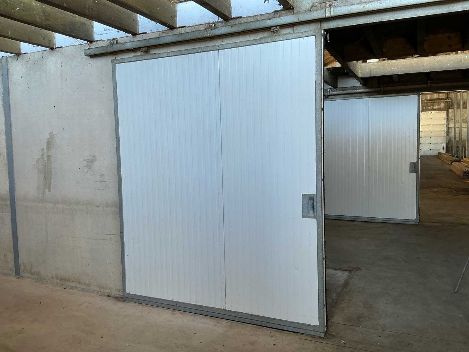 Consists of: 6 pieces sliding door 2100mm wide, 2500mm high, 60mm thick, galvanized frame, draft brushes, guides, rail 4500mm, handle inside and outside side, 2 pieces under guide per door, 15mtr rail for photos with 3 doors, 60 millimeter thick sandwich panels placed in a steel galvanized frame, fire-retardant PIR hard foam that also contributes to the insulation. Auction-ID: A1-40133-214