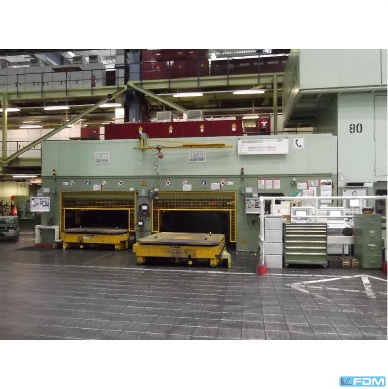 pressure:315 t distance between columns:2350 mm distance table/ram, max. stroke up, adjustment up:1200 mm distance between cutting impact cushioning:1600 mm Distance table/ram, stroke up:1200 mm stroke:800 mm table surface area:2060 x 1260 mm table height over floor:750 mm Die cushion pressure in table:100 t Die cushion stroke in table:400 mm die cushion area:1250 x 1000 mm side window:780 mm ram surface:2200 x 1500 mm Capacity of ejector in ram:63 t speed down:500 mm/s speed up:310 / 410 mm/s working speed:20 - 73 mm/s quantity of oil:3900 l power requirement:80,0 + 45,0 kW weight:55,0 t Dimensions (WxDxH):4,6 x 2,7 x 7,2 m Height above floor:6,0 m Height below floor:1,2 m German Safety: permitted for manual loading:UVV 11.064 - VBG 7n5.2 die cushion in table:hydraulic ejector in ram:hydraulic ram interlocking:hydraulic cutting impact absorption:hydraulic