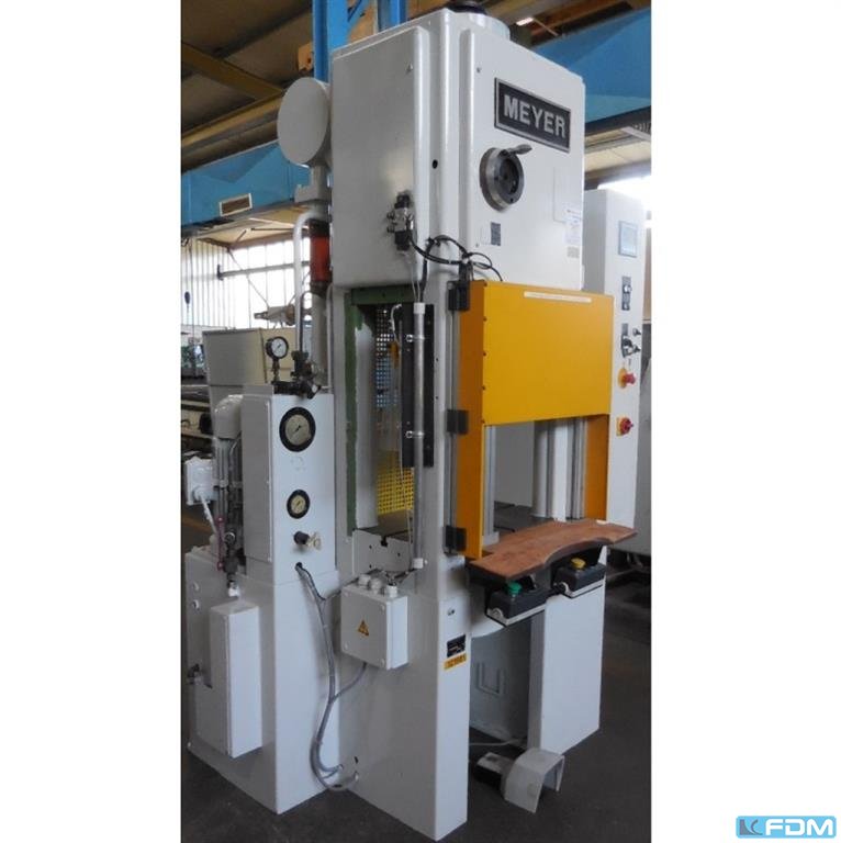 Pressure:63 t distance between columns:1000 mm stroke:300 mm Distance table/ram, max. stroke up, adjustment up:850 mm table surface area:980 x 500 mm table height above floor:850 mm ram surface:130 mm speed down:400 mm/s speed up:461 mm/s working speed:14 - 97 mm/s power requirement:15,0 kW Weight:5,0 t Dimensions (WxDxH):2,0 x 1,6 x 3,9 m depth stop:mechanical foundation pit:not necessary