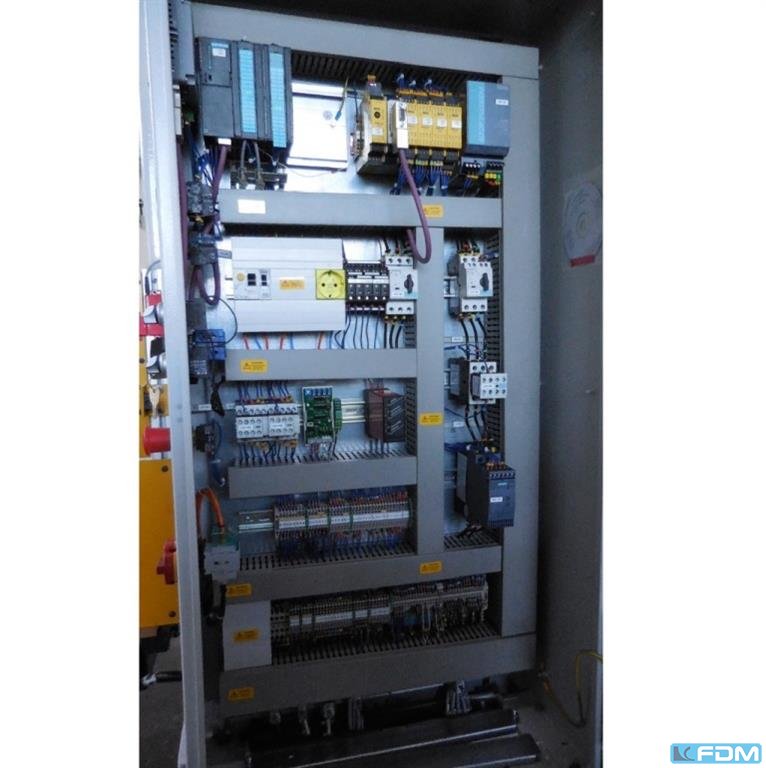 pressure:200 t stroke:30 - 160 mm no. of strokes:40 - 120 /min distance between columns:1500 mm distance between oil collecting pans:1300 mm distance table/ram, max. stroke up, adjustment up:860 mm hole in the table:550 x 300 mm table surface area:1250 x 1250 mm table height over floor:1000 mm column travel -side:600 x 530 mm ram surface:1250 x 1000 mm ram adjustment:125 mm Material width of feeder:30 - 500 mm Material thickness feeder:0,5 - 3,0 mm feeding length:0 - 999,9 mm power requirement:50,0 kW weight:34,0 t dimensions (WxDxH):4,0 x 1,7 x 5,2 m clutch-/ brake combination:pneumatisch, Ortlinghaus overload protection in ram:hydraulisch ram adjustment:automatisch stroke adjustment:automatisch ram counterbalance:pneumatisch roll feed:Weingarten, WE 60 Option: NEW electrical controls:Siemens S7-1500 F