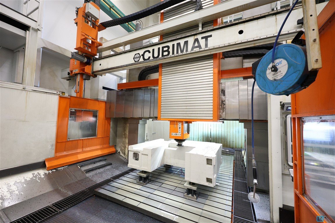 x-travel:6500/13150 mm y-travel:4000 mm z-travel:1250 mm w-axis:2250 mm table surface area:5500/12150 x 3000 mm max. workpiece weight:70.000/105.000 kg ram head dimension:480 x 510 mm milling spindle motor:63 kW max. torque on the spindle:3300 Nm tool taper:DIN 39871 AD ISO 50 milling head speed:6,3 - 4000 U/min feed speeds:1 - 24000 mm/min w-axis:1 - 6000 mm/min. distance between columns:3500 mm passage:3000 mm total power requirement:120 kW weight of the machine ca.:245 t dimensions of the machine ca.:29,0 x 7,7 x 8,1 m The machine is in mint condition and was generally overhauled in 2020! with CNC SIEMENS 840 D autom. tool magazine for 153 tool stations autom. milling head magazine for 6 heads milling heads - straight - straight extended length - milling head -angular head standard - 4000 rpm, 144 x 2,5°, ISO 50 milling head -angular small extended length -40 kW, 4000 rpm, 1800 Nm, ...