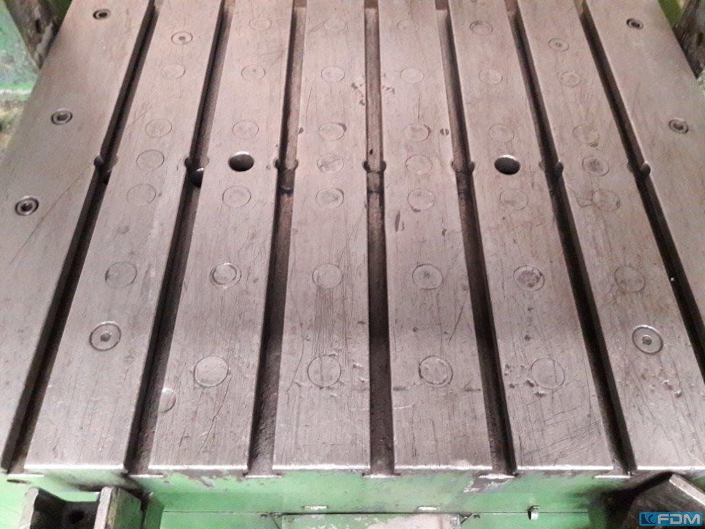 pressure:200 t distance between columns:2100 mm stroke:550 mm Distance table/ram, stroke up:1800 mm table surface area:2000 x 2800 mm table height over floor:760 mm ram surface:2000 x 2000 mm Side window:2000 mm feed down:400 mm/s power requirement:51,0 kW weight:33,0 t dimensions (WxDxH):3,25 x 3,5 x 5,4 m Height above floor:5,4 m foundation pit:not necessary