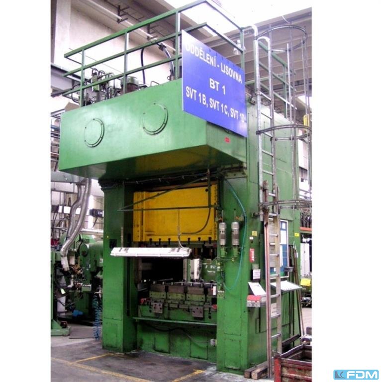 pressure:200 t distance between columns:2100 mm stroke:550 mm Distance table/ram, stroke up:1800 mm table surface area:2000 x 2800 mm table height over floor:760 mm ram surface:2000 x 2000 mm Side window:2000 mm feed down:400 mm/s power requirement:52,0 kW weight:33,0 t Dimensions (WxDxH):3,25 x 3,5 x 5,4 m Height above floor:5,4 m foundation pit:not necessary