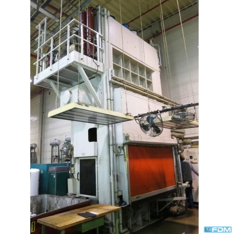 Pressure:1000 t distance between columns:4100 mm stroke:1200 mm Distance table/ram, stroke up:2100 mm Table surface area:4000 x 2200 mm pressure of drawing cushion in table:360 t Die cushion stroke in table:300 mm Die cushion area in table:3500 x 1600 mm Die cushion pressure in ram:100 t Die cushion stroke in ram:160 mm Die cushion area in ram:3250 x 1600 mm Ram surface:4000 x 2200 mm Side window:1300 mm Oil volume:8000 l Power capacity:300,0 kW Dimensions (WxDxH):5,75 x 4,3 x 9,55 m Height above floor:7,7 m die cushion in table:hydraulic, controllable die cushion in ram:hydraulic, controllable cutting impact cushioning:hydraulic