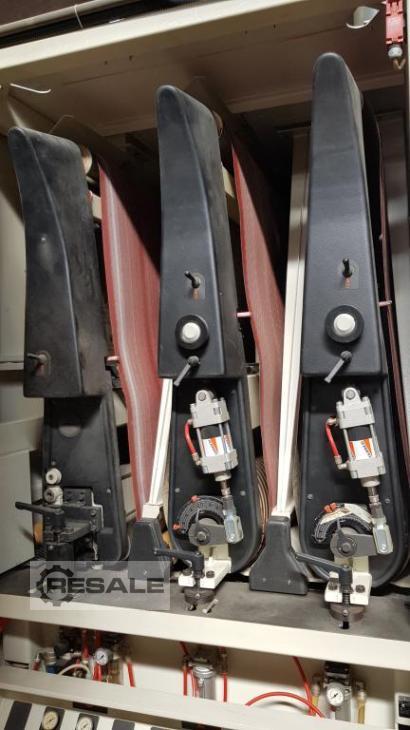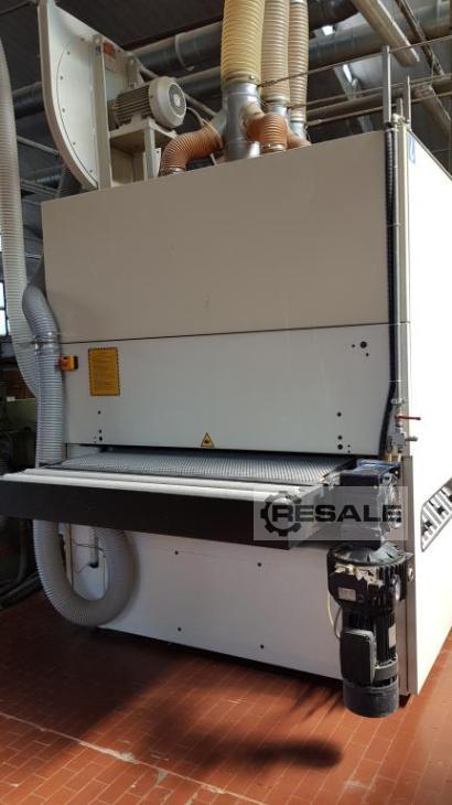 CALIBRATING SANDING machine with 3 belts model DMC TECHNOSAND 1350 RRP second-hand machine working conditions excellent machine with vacuum unit for table machine with CE regulation: YES instruction booklet : YES universal machine for wood, furniture, custom-made furniture, wooden frames, doors, panels, composite materials, plastics and various technical data: max. working width mm.1350 max. working height mm.150 min. working height mm.3 dimensions of abrasive belts mm.1380 x 2620 automatic centering composition machine ( 3 units , 3 independent motors ) : 1st unit : rubber roller diameter mm.170 - shore 45 . motor power Hp 15 automatic blowers for cleaning abrasive belts 2nd unit : rubber roller diameter mm.170 - shore 45 . motor power Hp 15 automatic blowers for cleaning abrasive belts 3rd unit : electronic segmented pad n.34 sectors . motor power Hp b ...