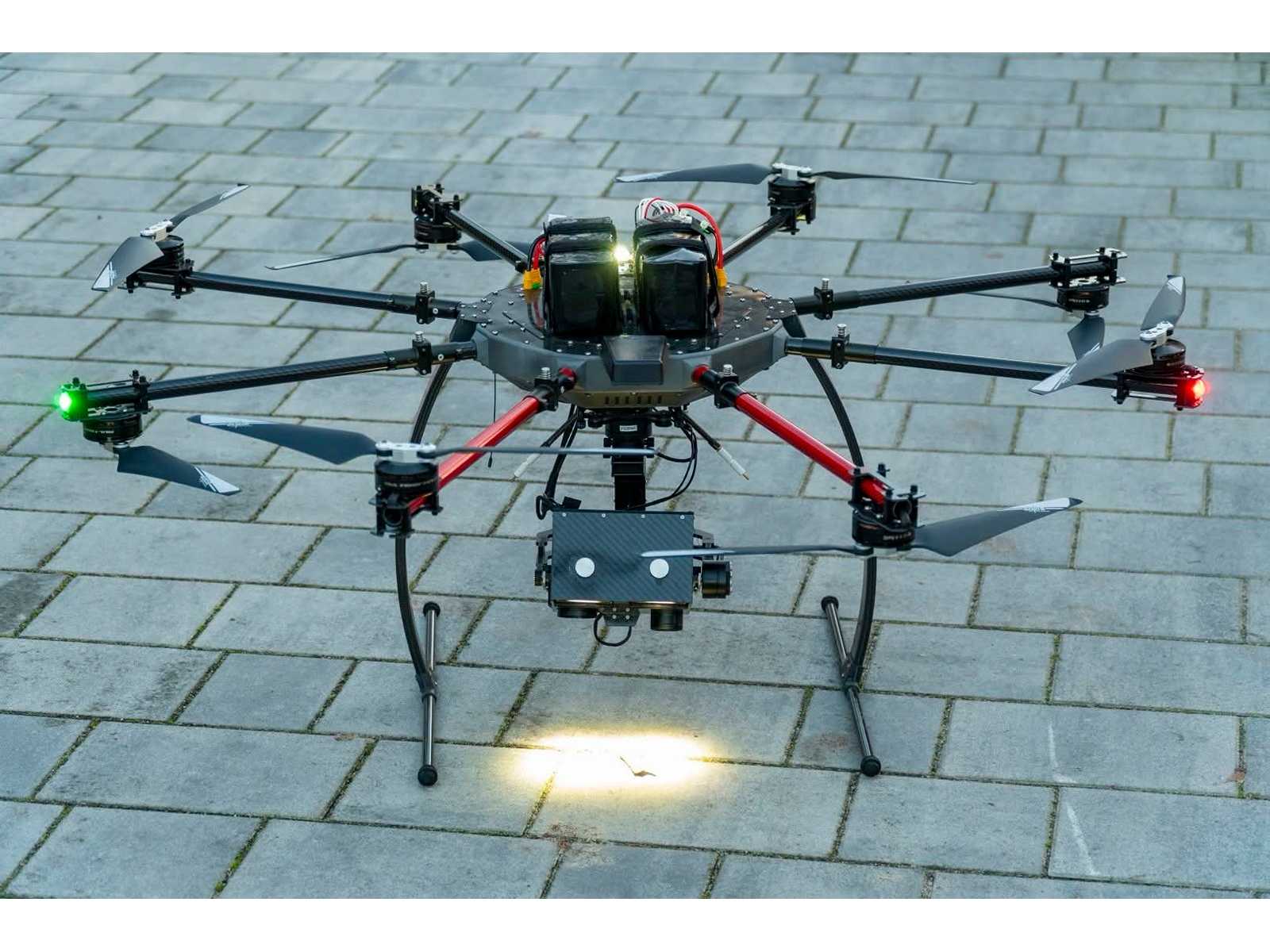For sale a complete, fully functional EVO-X8 multicopter – BOS version (Feuerwehr / Police / THW). The drone is equipped with a full vision system (640×512 thermal imaging camera, ZOOM camera, and powerful spotlight), a receiving monitor, a digital transmission system, a professional Horus X12S transmitter, six 22.2V batteries, a 4-channel charger, and a complete set of transport cases. The set is 100% ready for operation. For more specification you can see in attached pdf file Auction-ID: A7-45414-1