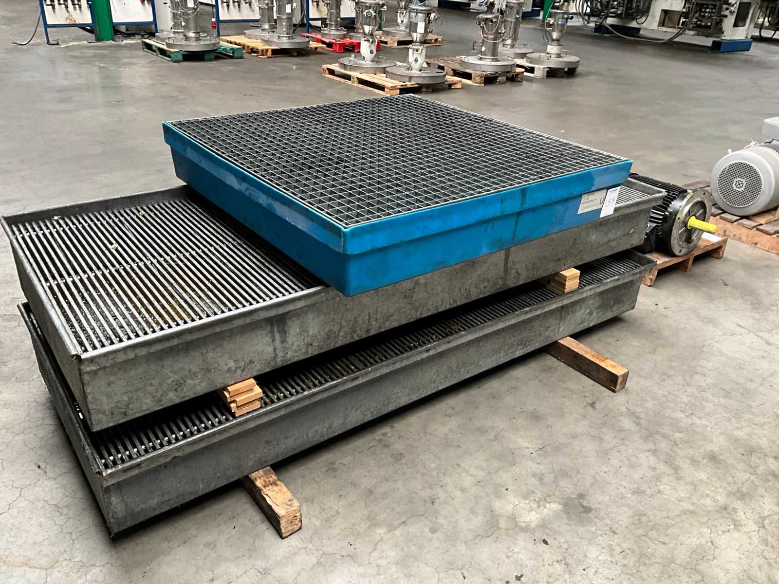 1x plastic container with steel grid floor 1200x1200x220 mm, 2x steel container 2250x1000x250 mm Auction-ID: A1-43992-157