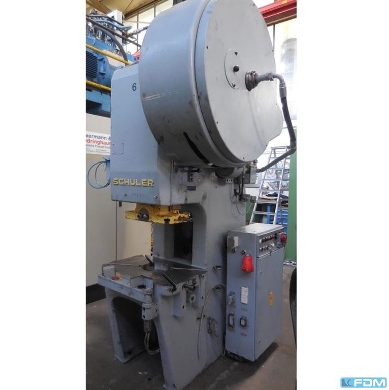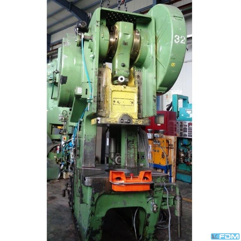 pressure:160 t throat:400 mm stroke:30 - 200 mm no. of strokes:50 /min distance table/ram, max. stroke up, adjustment up:600 mm table surface area:1000 x 770 mm table height over floor:810 mm hole in the table:360 mm Passage to the back:450 mm ram surface:710 x 450 mm ram adjustment:110 mm power requirement:15,0 kW weight:10,5 t Dimensions (WxDxH):1,7 x 2,0 x 3,2 m German Safety: permitted for manual loading:UVV 11.062 - VBG 7n5.1 clutch:hydraulic overload protection in ram:mechanical ram counterbalance:pneumatic