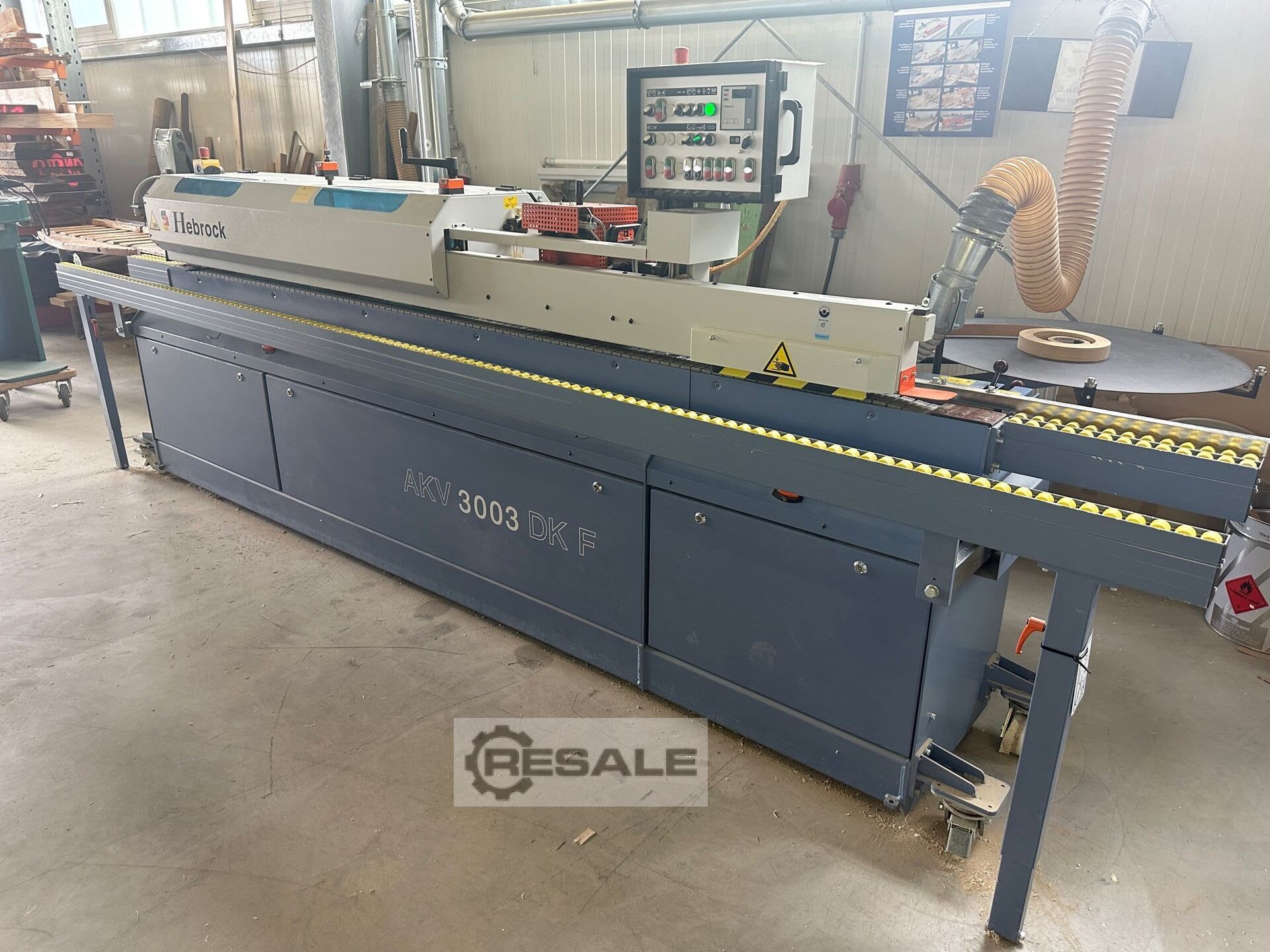 Hebrock Euro 2000 edge banding machine – ready for immediate use Our affordable alternative. For sale is a robust and proven Hebrock Euro 2000 edge banding machine from 1993. The machine has been overhauled and is ready for immediate use. Some components have already been repaired: • Several hoses renewed • Replaced several cylinders Despite its age, the machine delivers a clean and reliable work result – typical of Hebrock's solid construction. Technical data: • Voltage: 400V 50 Hz • Connected load: 11.5 kW • Pneumatic roller capping up to max. 3 mm edge thickness • HF cross-cut saw up to 8mm edge thickness • HF combi milling station • Double belt feed • Foldable side outriggers Ideal for smaller workshops or ambitious hobby users who are looking for a functioning edge banding machine. Feel free to take a look at our other offers! m ...