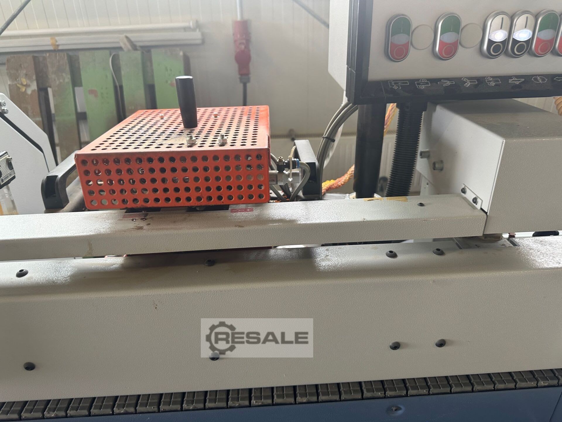 Edge banding machine Type: Sprint 1317 Manufacturer: Holz-Her Year: 2006 Edge Control with 18.5" 16:9 color touch screen rotary control panel, memory for programs, motorized adjustment of the pressure beam, feed using a transport chain, feed 8–18 m/min extendable support surface for workpieces Trimming milling unit 1961, diamond cutting cutter in right- and left-hand operation, automatic adjustment to the height of the workpiece Edge feeding 1903 Pre-cutting up to 3 x 45 mm (depending on the material) Adhesive system 1905 Multi-System automatic adjustment of the glue height using the touch nozzle, Pressure regulator for adjusting cartridge pressure, the possibility of using PUR adhesives, pressure device 1913 MOT, 1. cylinder driven Trimming unit 1918 with pneumatic adjustment Pneumatic cut-off saw rotating Multifunctional unit 1824 MOT 4 with a multifunctional ...