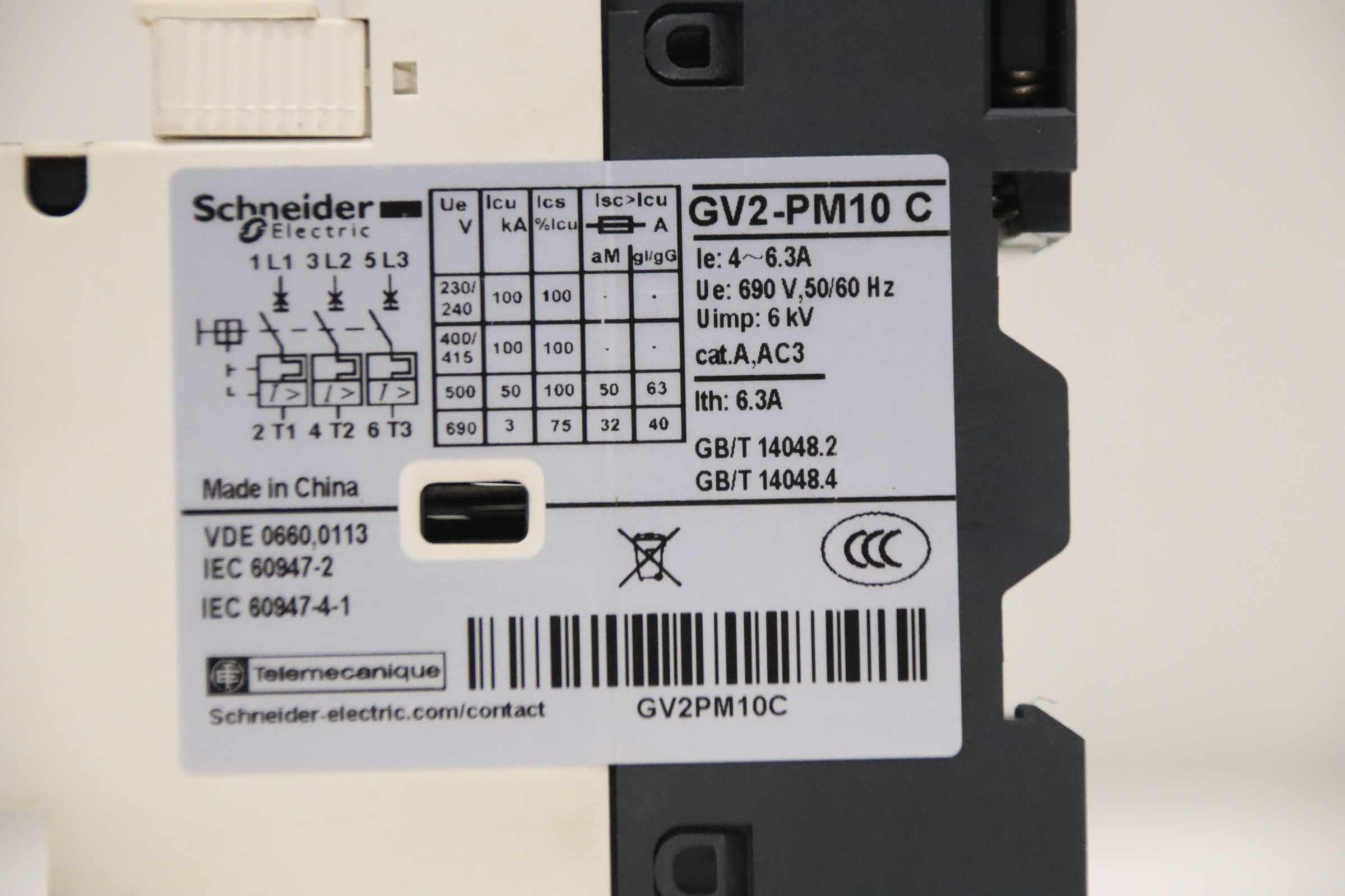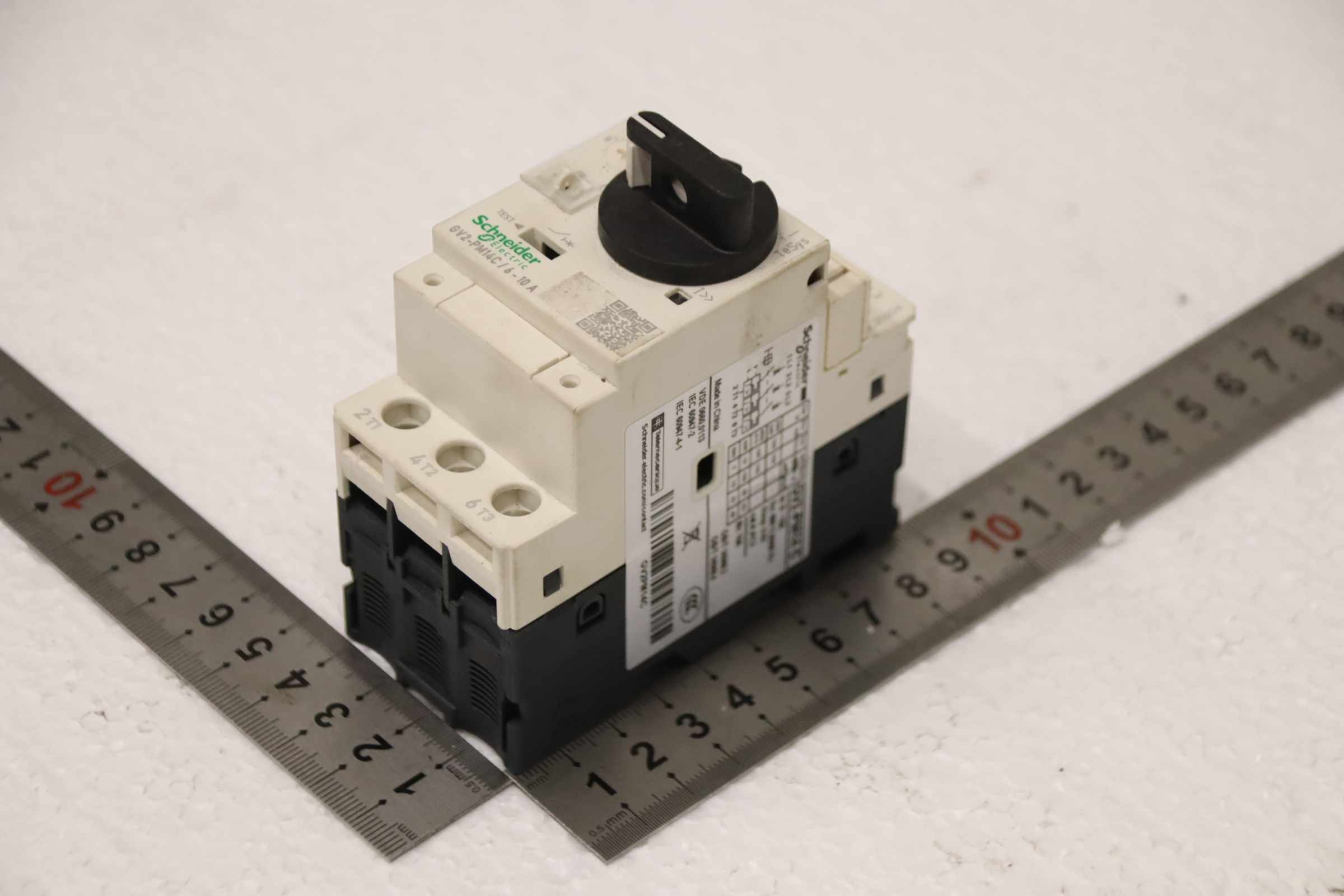 Auxiliary circuit breaker, circuit breaker, miniature circuit breaker, load break switch, load disconnector, motor protection switch, power switch, power disconnector, auxiliary switch, main switch, on/off switch, cam switch -Manufacturer: Schneider Electric, Motor protection switch with rotary actuator -Type: GV2-PM14 C / 6-10 A -Number: 3x switches available -Price: per piece -Dimensions: 80/45/H90 mm -Weight: 0.3 kg/pc.