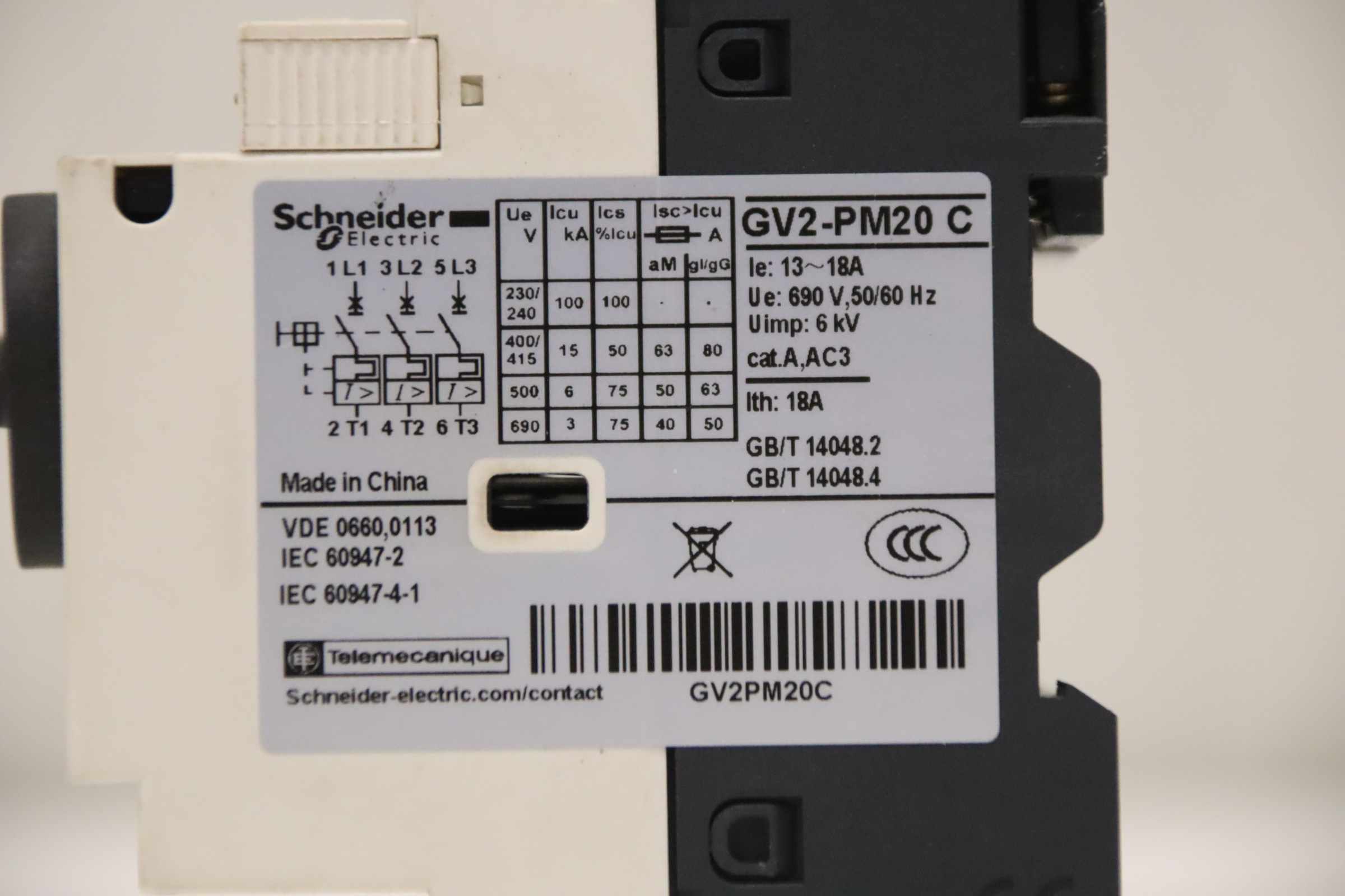 Auxiliary circuit breaker, circuit breaker, miniature circuit breaker, load break switch, load disconnector, motor protection switch, power switch, power disconnector, auxiliary switch, main switch, on/off switch, cam switch -Manufacturer: Schneider Electric, Motor protection switch with rotary actuator -Type: GV2-PM20 C / 13-18 A -Number: 2x switches available -Price: per piece -Dimensions: 80/45/H90 mm -Weight: 0.3 kg/pc.