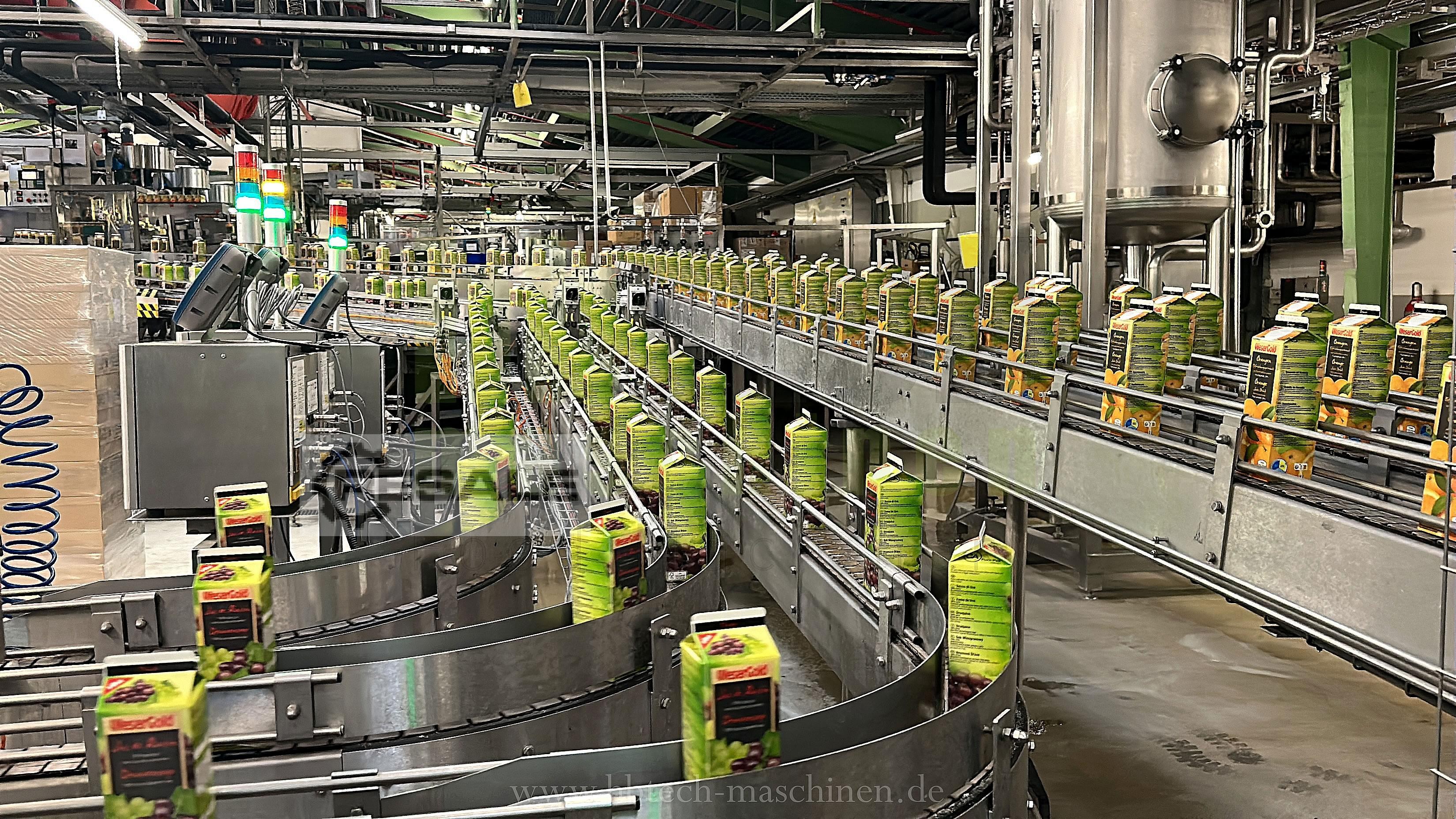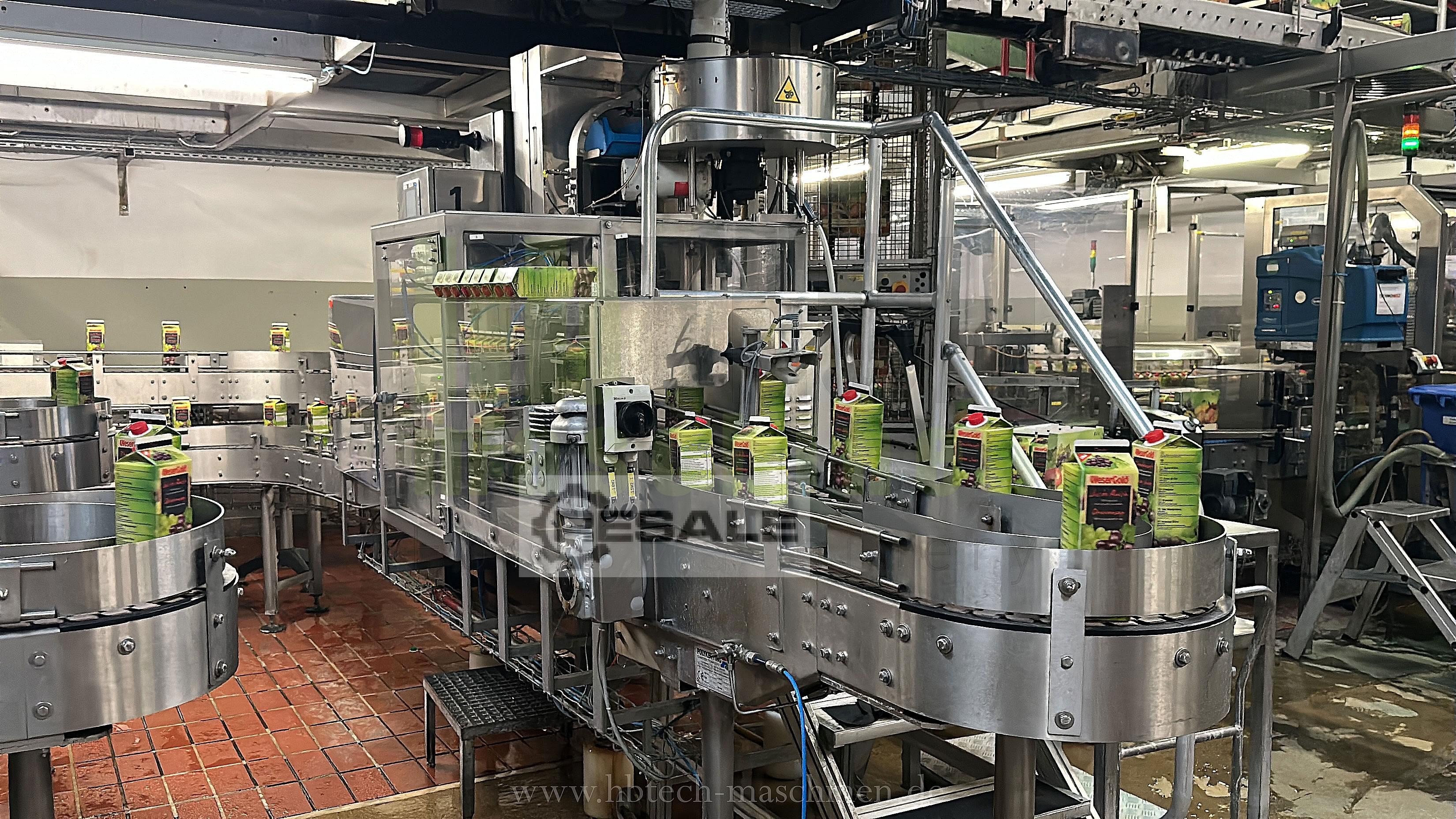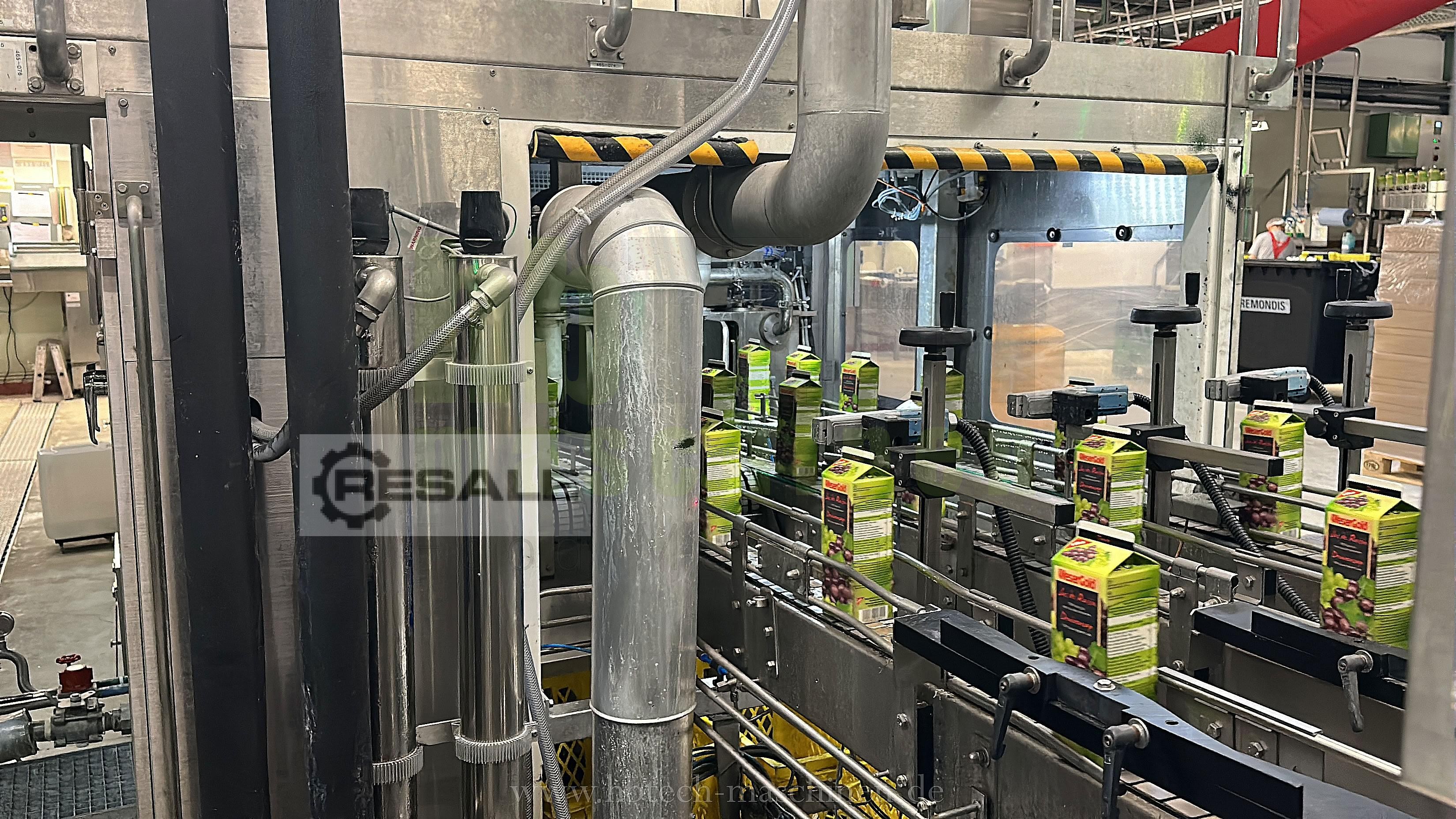 This line is an automatic filling line designed for the aseptic filling of products with low pH (4.5), such as fruit juices with or without pulp, nectars and other non-carbonated fruity beverages, into 500 ml, 750 ml and 1000 ml barrier carton containers at ambient temperature and further packaging of the containers in cartons for distribution. These products have the same shelf life as Tetra Pak technology. This line has a capacity of 8100 cartons/hour, but can h6136623 also be set to 7000 and 6000 cartons/hour.