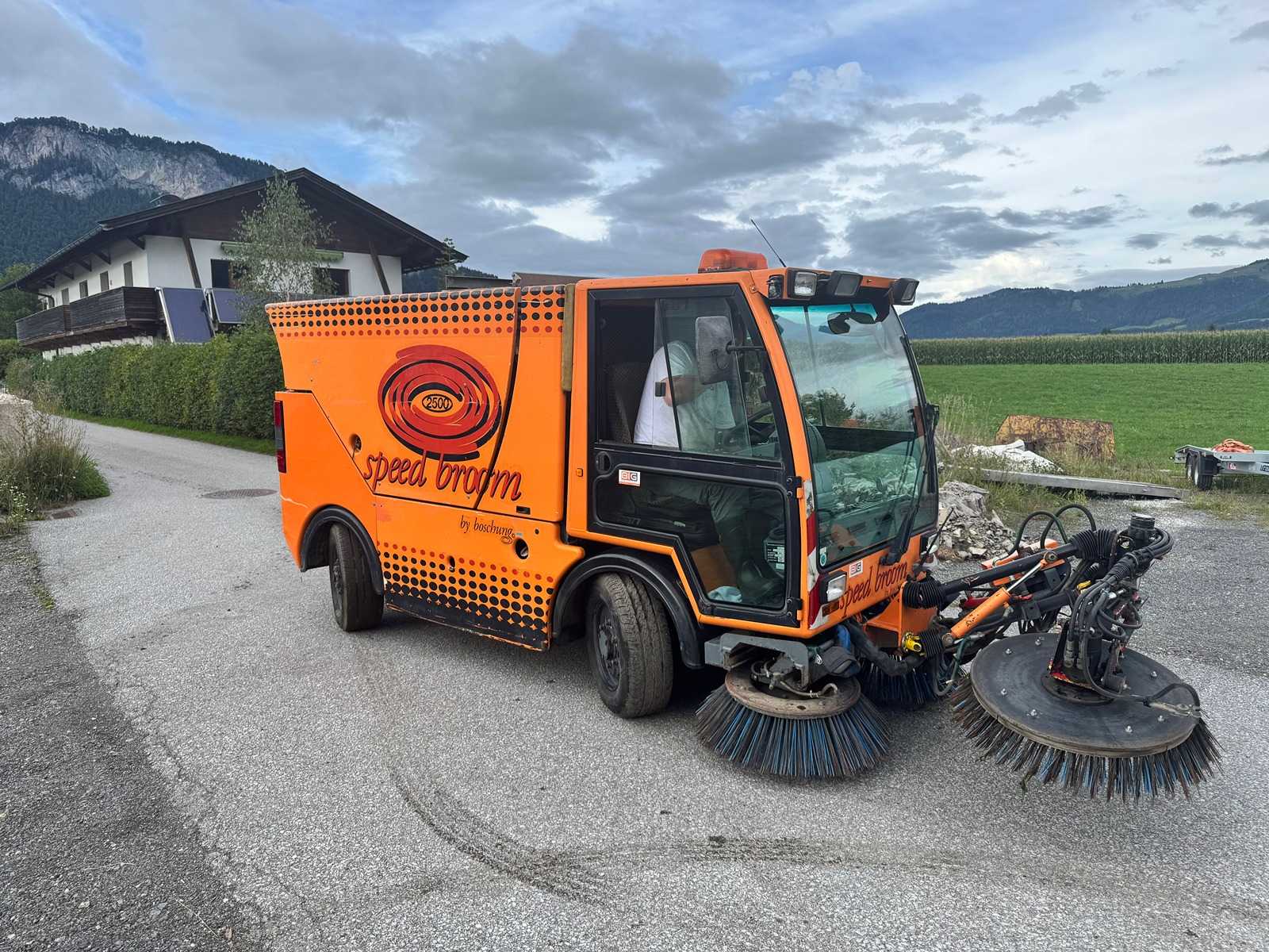 used sweeper in good general condition. Sweeper container tight and all functions mostly common. Sweeper cover available but currently not mounted. We gave loose (a hydraulic line is currently defective) Side brushes and front brushes swivel and slid. Turbine intact and sucks! incl. connection for high-pressure lance in the rear. Auction-ID: A1-45733-14