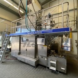 Designed as a machine for smaller formats, the 19 200 Base is capable of producing 7500 packs per hour. It is suitable for filling different products. Preferably, aseptic products are filled in the machine, which are previously fed into the filling line via a UHT or a pastorizer for preservation. Subsequently, it is possible to equip the filling machine with different downstream equipment. You are welcome to contact us to find the right selection for your requirements. We are also happy to support you in the planning and implementation of the necessary conveyor belt systems to connect the individual machines as a line. All machines undergo extensive technical work before they are put back into operation, which we always carry out in our workshop. In the end, there are always tests to be fully verified. These tests guarantee the perfect condition of the machine for the customer. On reques ...