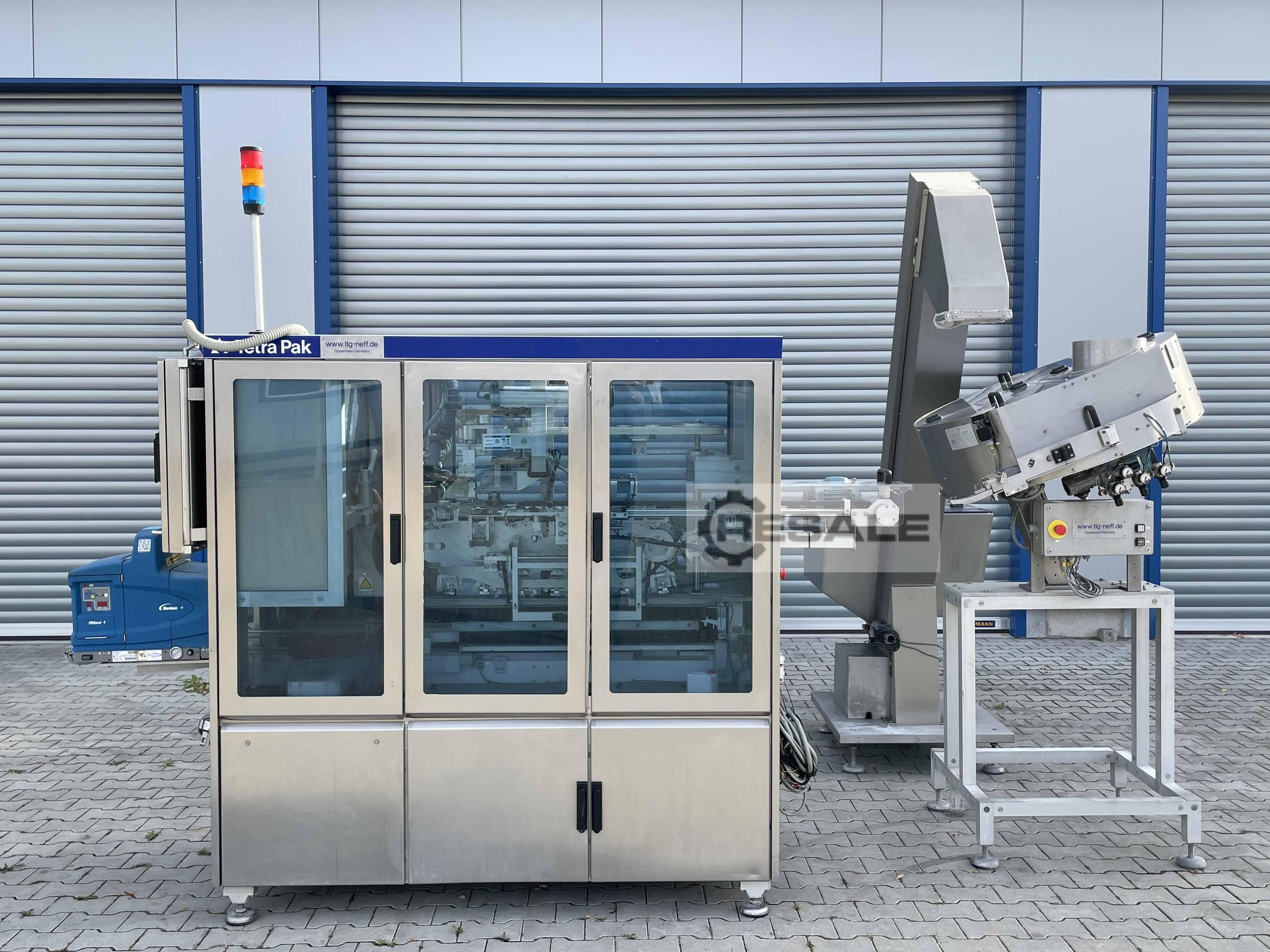 Recommended as a line with PT 8, closure applicator TCAP ReCap 2 and packer TCBP 62. The 1000 Base format is Tetra Pak's classic one-litre brick format. This TBA 8 offered here is from the V100 development stage. Like all of our Tetra Pak machines, this line is first subjected to a thorough incoming check. After the following cleaning and the extensive examination of the condition, we overhaul the machine with the necessary care. This machine is equipped with a TP MC control system and produces 6000 packs per hour. As with most Tetra Pak machines, we are happy to offer you these with the associated machines for an entire filling line. Regardless of this, we will be happy to advise you in advance and make you an individual offer. Please contact us or schedule a visit to our workshop to see the extensive work for yourself. From our extensive range of machines that we have in stock, we are ...