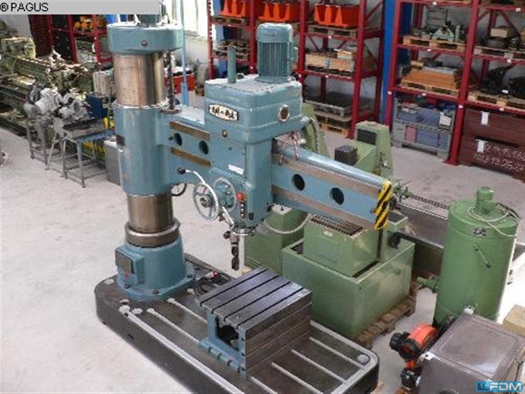 bore capacity in steel (diameter):63 mm arm length:2000 mm workpiece height max.:135 mm spindle stroke:400 mm reus:16 Stufen table-size:630 x 800 mm tool taper:MK 5 speeds:20 - 1600 U/min spindle feeds::0,04- 32 mm/U work table::800 x 630 x 550 mm total power requirement:5,5 kW weight of the machine ca.:6200 kg dimensions of the machine ca.:3100 x 1250 x 2500 mm Year:ca. 1990