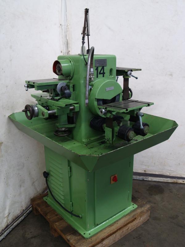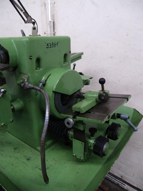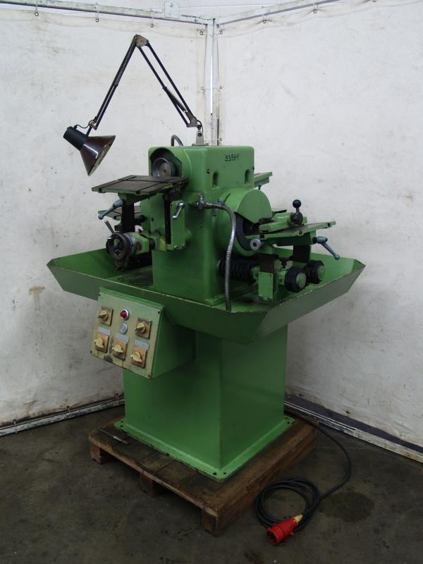 Graver grinding machine PARPAS type AUFabr. No. 854/36 Year of construction 1971Grinding wheel diameter 100 mmGrinding spindle speed approx. 3500 rpm. Motor power approx. 0.55 kWNetz connection 380 volts, 50 Hz- Socket for collets (system DECKEL with S20x2)- Collet 15.0 mm- Diamond grinding wheel dresser for the grinding wheel endSpace: L x W x H 700 x 350 x 450 mmWeight approx. 80 kgGood condition; used